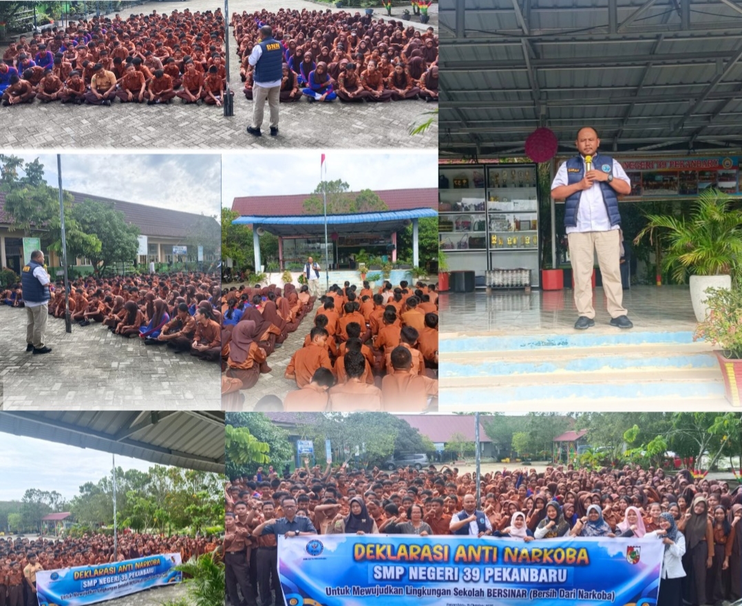 PEKANBARU, KUJANGPOST.com — Upaya membentengi generasi muda dari bahaya narkoba terus digalakkan Badan Narkotika Nasional Kota (BNNK) Pekanbaru. Kali ini, melalui Seksi Pencegahan dan Pemberdayaan Masyarakat (P2M), BNNK Pekanbaru melaksanakan kegiatan Sosialisasi Bahaya Ancaman Narkoba sekaligus Deklarasi Anti Narkoba di SMP Negeri 39 Pekanbaru, Rabu (15/10/2025).