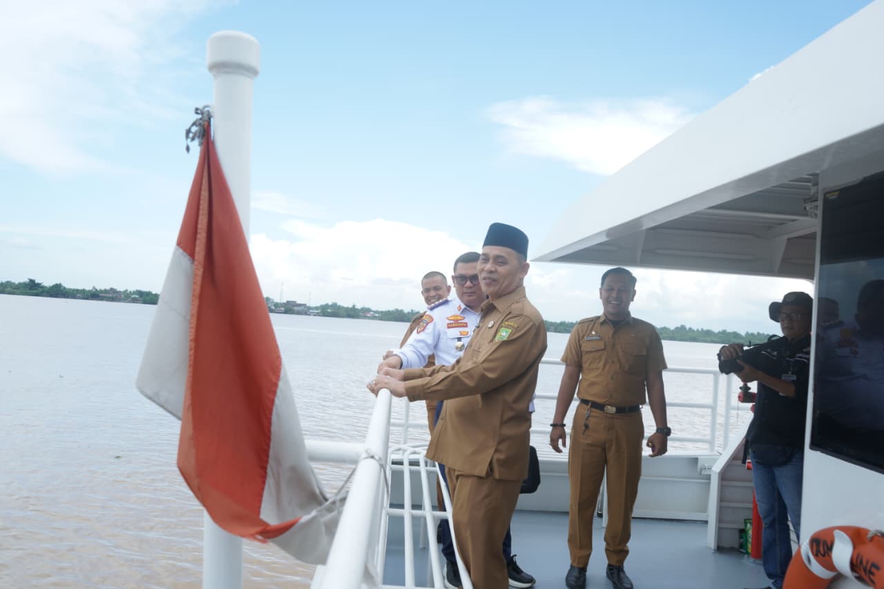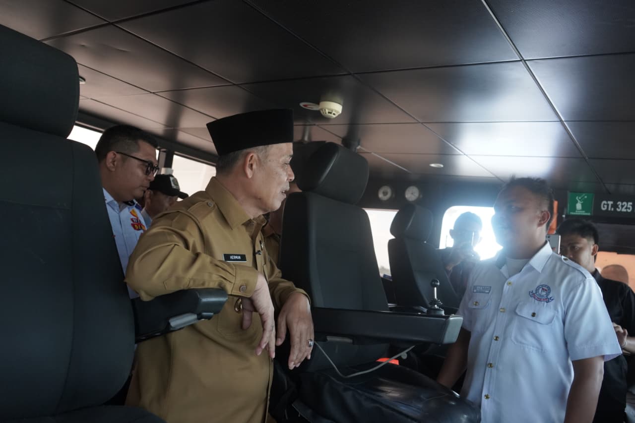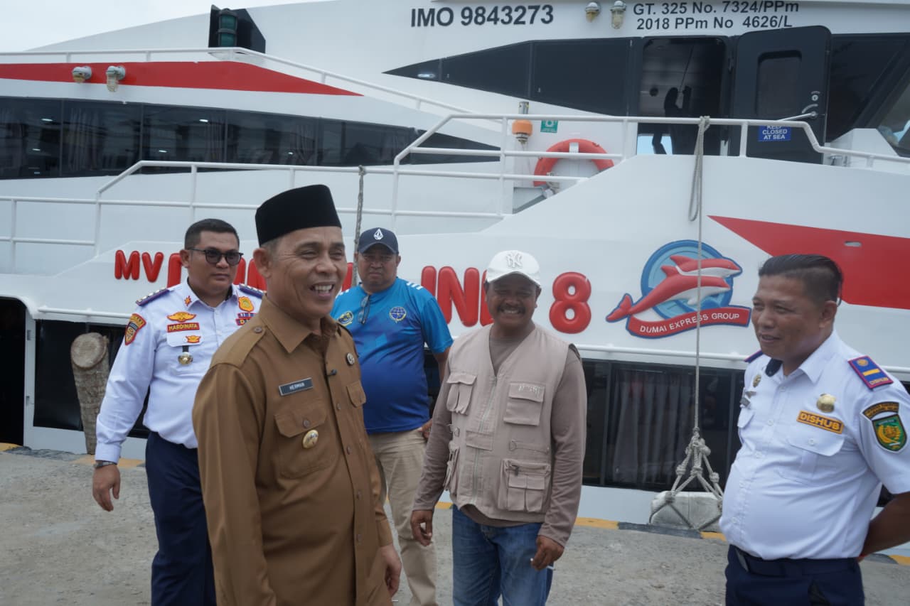 Bupati Inhil Herman pun langsung mengecek kesiapan angkutan yang bersandar di Pelabuhan Lasdap tersebut.