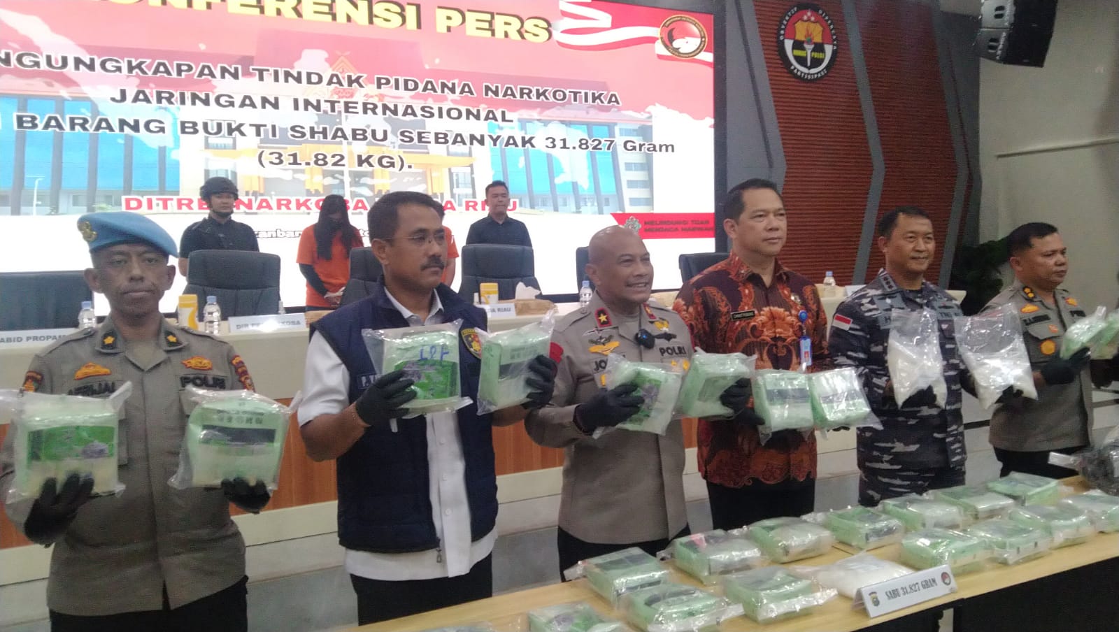 PEKANBARU, KUJANGPOST.com – Direktorat Reserse Narkoba (Ditresnarkoba) Polda Riau bersama Lanal Dumai kembali mencetak prestasi besar dalam upaya pemberantasan narkotika. Melalui operasi gabungan yang berlangsung akhir pekan lalu, aparat berhasil menggagalkan penyelundupan 31,82 kilogram sabu dari jaringan internasional.
