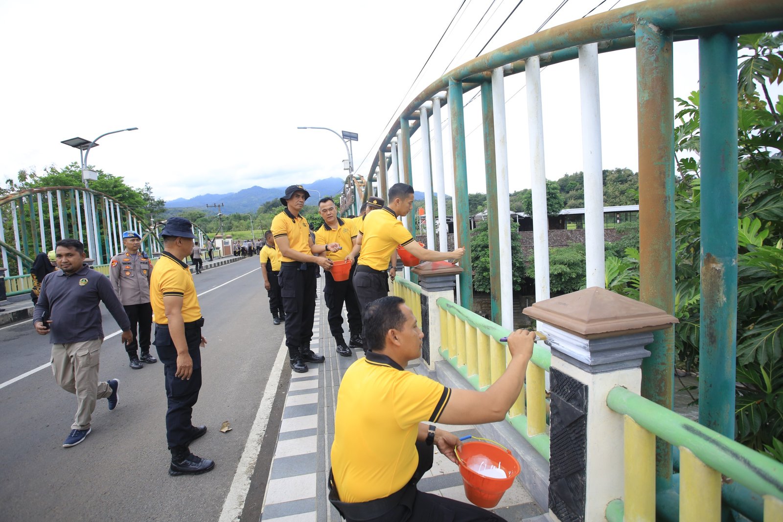 Dalam kegiatan tersebut, personel bersama-sama melaksanakan pengecatan jembatan serta membersihkan rumput liar di sekitar area jembatan. Aksi ini merupakan bentuk nyata kepedulian Polres Madiun terhadap kebersihan dan keindahan lingkungan, sekaligus mendukung program Polri yang berorientasi pada pelayanan dan pengabdian kepada masyarakat.