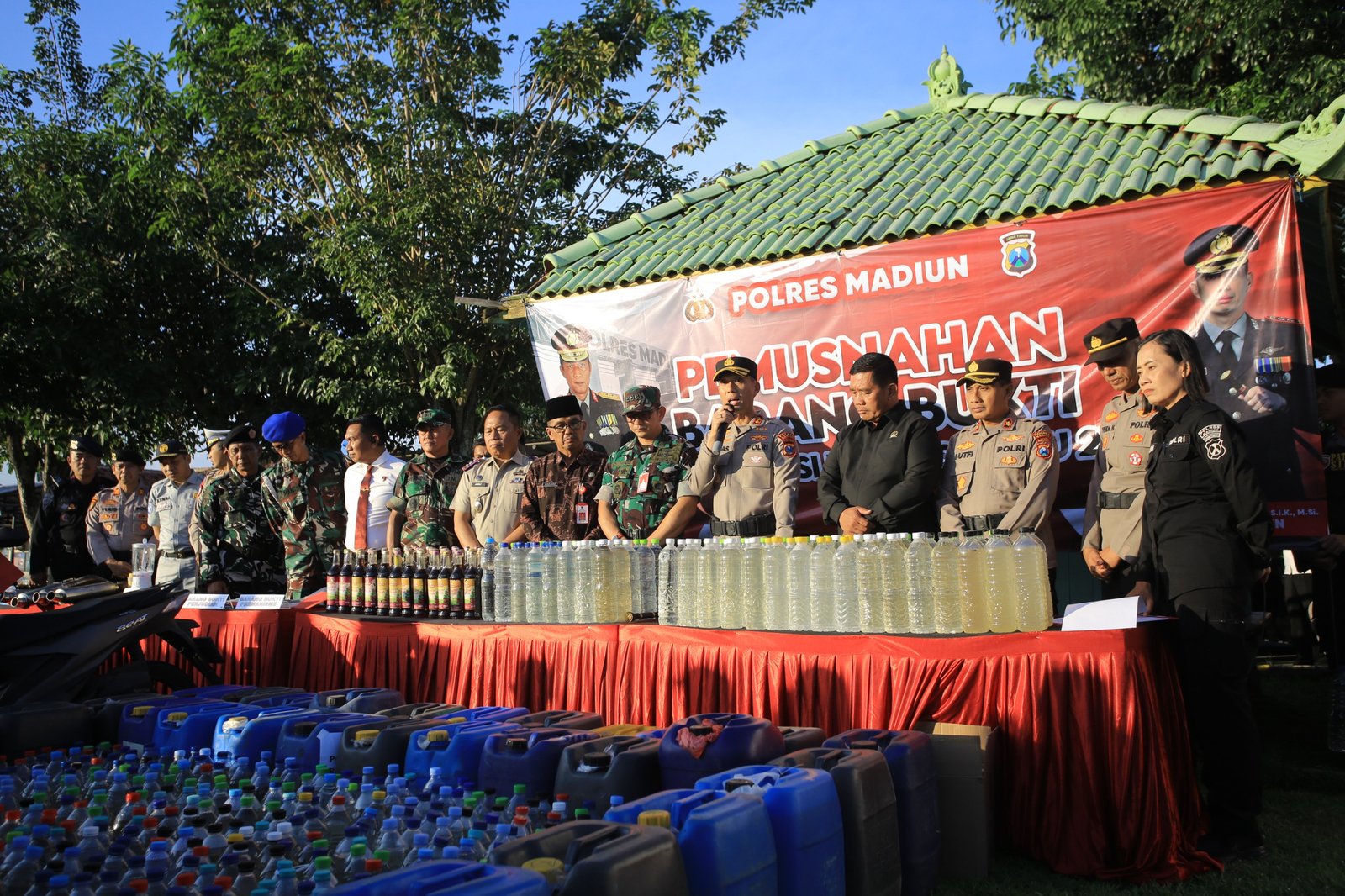 • Peredaran Miras Ilegal: Menjadi kasus terbanyak dengan total 58 kasus dan 58 tersangka. Petugas menyita 1.195,6 liter minuman keras jenis arak jowo yang disimpan dalam berbagai kemasan jerigen dan botol mineral.
