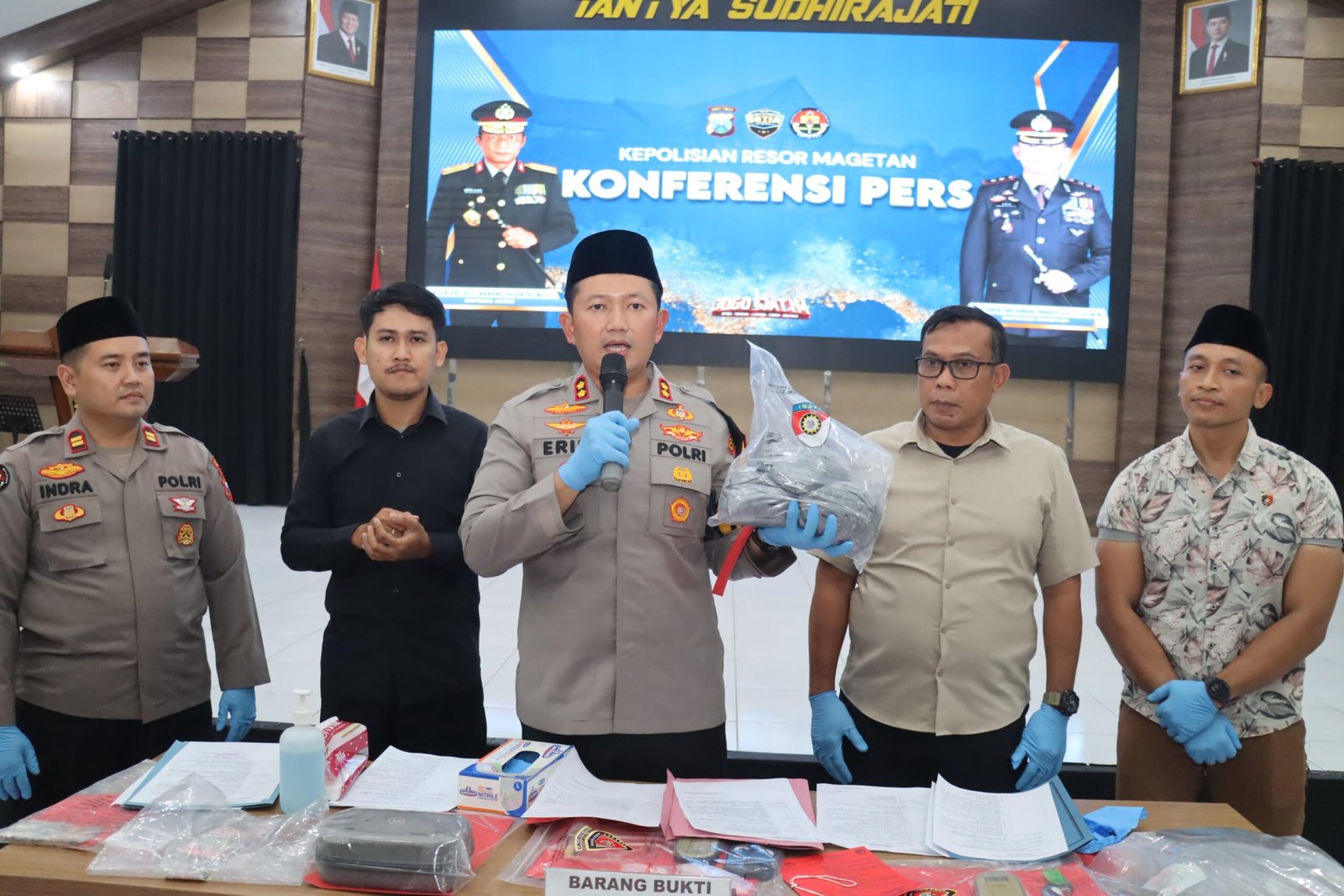 Magetan .Kujangpost.com- Jajaran Polres Magetan berhasil mengamankan seorang pria asal Kecamatan Geger, Kabupaten Madiun, karena kedapatan membawa bahan peledak jenis serbuk mercon seberat 3 kilogram. Pengungkapan kasus dugaan tindak pidana penyalahgunaan bahan peledak tersebut disampaikan langsung oleh Kapolres Magetan AKBP Raden Erik Bangun Prakasa dalam konferensi pers, Kamis (26/2/2026).