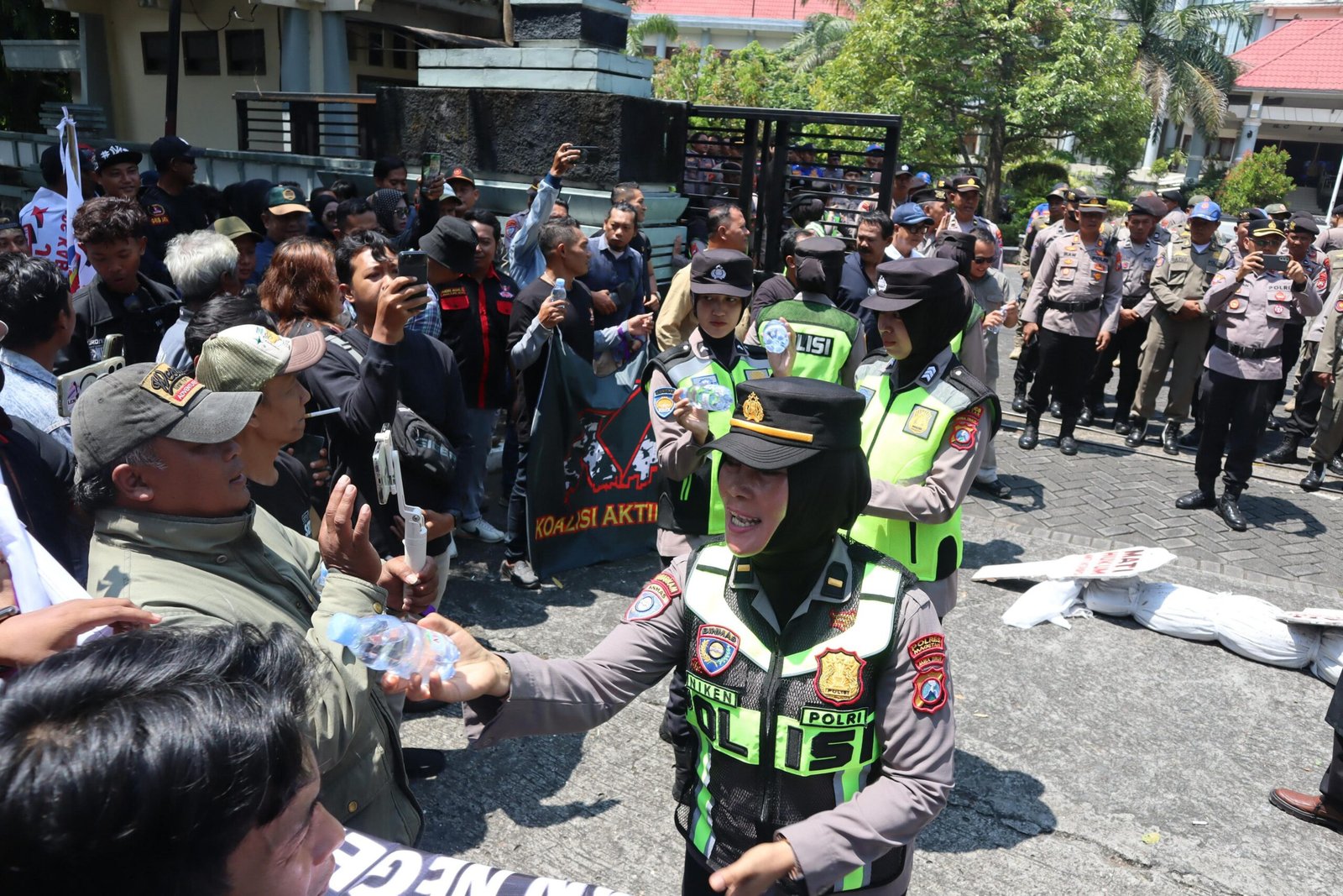 Ratusan Personel Polisi Amankan Aksi Damai di Magetan, Polwan Turun Bagikan Minuman untuk Massa