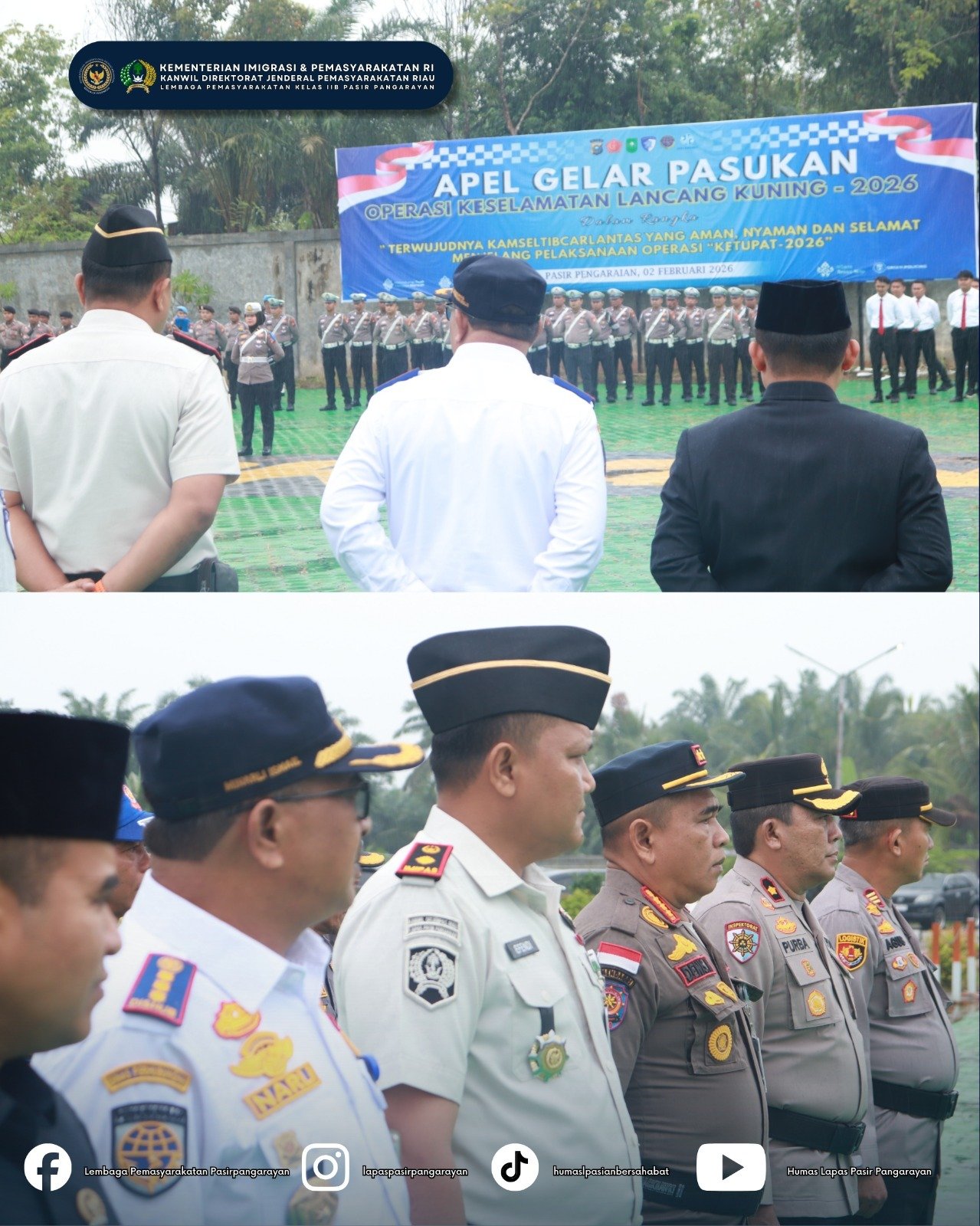 Kepala Lapas Kelas IIB Pasir Pangarayan Efendi Parlindungan Purba menyampaikan bahwa pihaknya mendukung penuh pelaksanaan Operasi Keselamatan Lancang Kuning 2026 sebagai upaya bersama dalam menciptakan keamanan, ketertiban, dan keselamatan masyarakat. Lapas Pasir Pangarayan siap bersinergi dengan Polri dan instansi terkait guna menjaga situasi yang kondusif, khususnya menjelang Hari Raya Idulfitri.