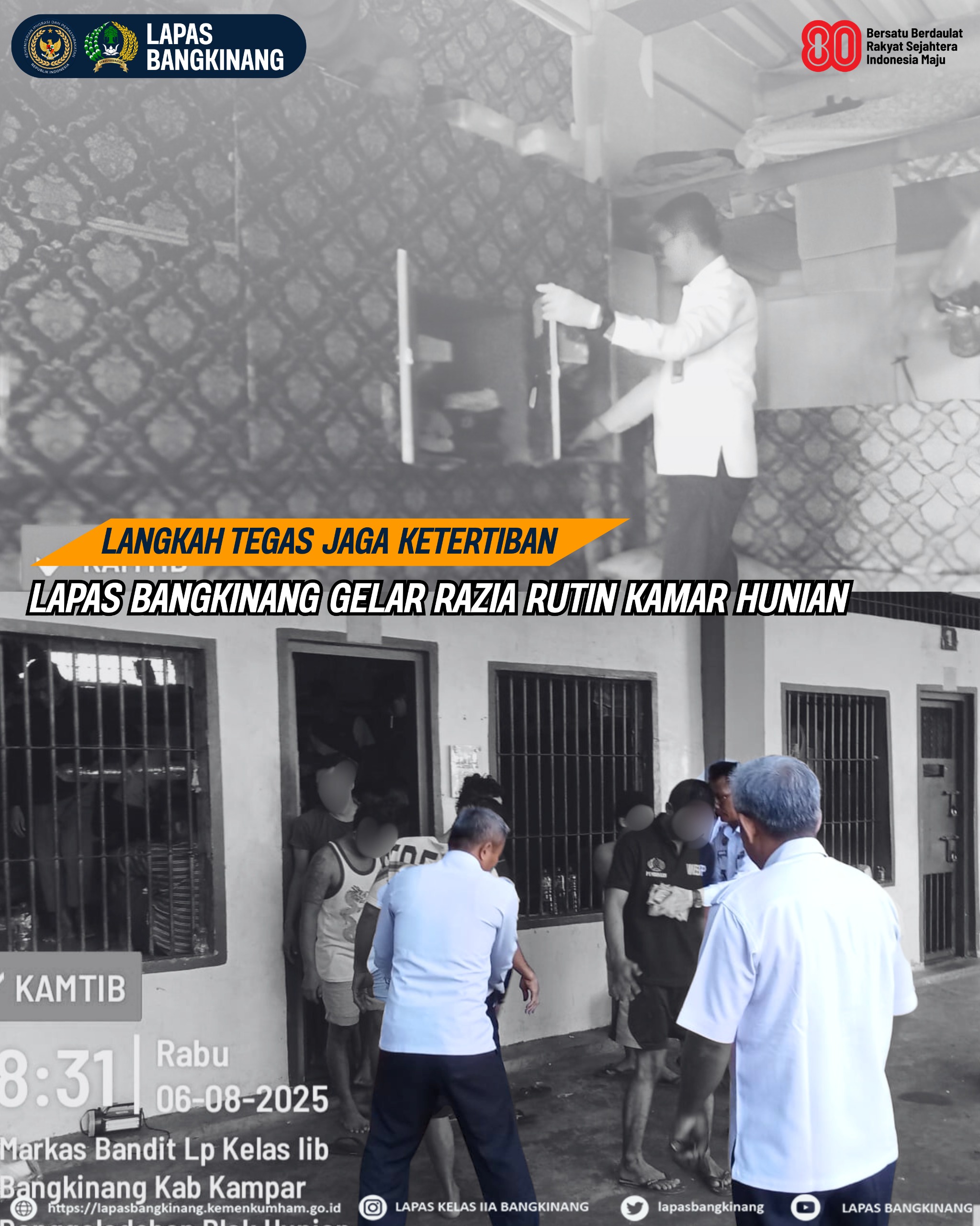 BANGKINANG,  KUJANGPOST.com – Lembaga Pemasyarakatan (Lapas) Kelas IIA Bangkinang pada hari ini melaksanakan razia insidentil kamar hunian Warga Binaan Pemasyarakatan (WBP) untuk menjaga kondisi keamanan dan ketertiban, Rabu (06/08/2025).