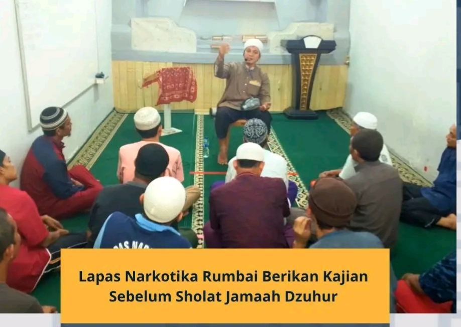 RUMBAI, KUJANGPOST.com – Sebagai bentuk Pembinaan Kepribadian di Lembaga Pemasyarakatan Narkotika Kelas IIB Rumbai khususnya bidang Kerohanian Islam Lapas Narkotika Rumbai melaksanakan Kegiatan Kajian Sebelum Sholat Dzuhur, Rabu (6/8/2025). Pembinaan seperti Kajian ini bertujuan untuk menambah wawasan Warga Binaan Pemasyarakatan yang beragam muslim, selain untuk mempertebal keimanan serta spiritual Warga Binaan Pemasyarakatan khususnya yang beragama Islam.
