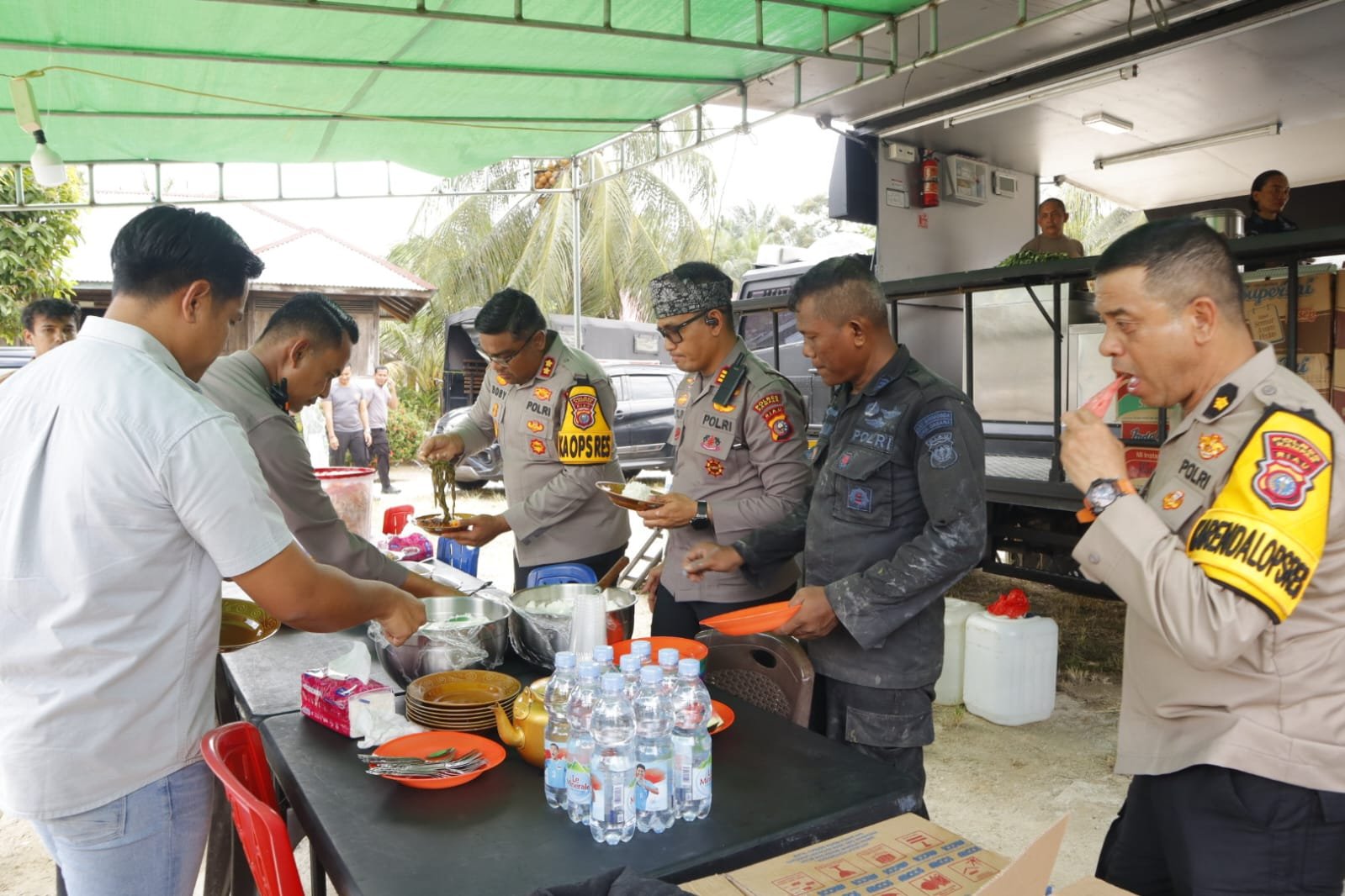 Sambil menikmati hidangan, Kapolres Kampar berinteraksi langsung dengan para personel Satgas, mendengarkan keluh kesah mereka, serta memberikan motivasi untuk terus bekerja keras demi kepentingan masyarakat.