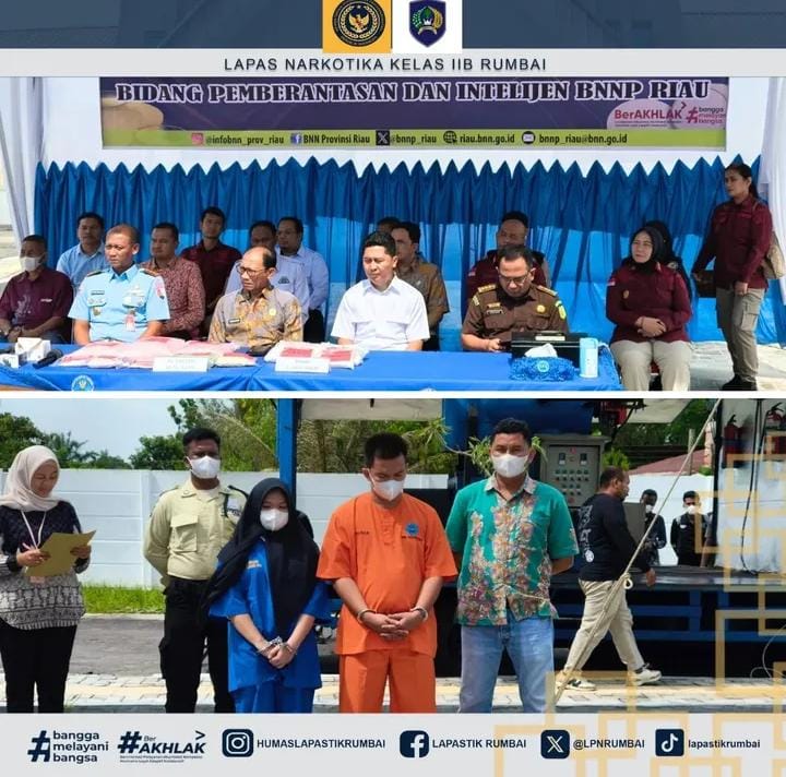 Dalam rangka melaksanakan 13 Program Akselerasi Menteri Imigrasi dan Pemasyarakatan, Lembaga Pemasyarakatan (Lapas) Narkotika Kelas IIB Rumbai menghadiri pemusnahan barang bukti shabu seberat 3.730,50 gram dan ekstasi 28.121 butir bersama BNNP Riau, Kamis (22/05/2025).