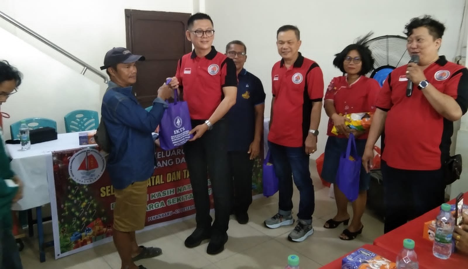 Penyerahan bantuan berbagi kasih paket sembako Natal dan Tahun Baru 2026 ini menjadi bukti komitmen IKTS Pekanbaru dalam menebarkan nilai kebersamaan, toleransi, dan kepedulian sosial, khususnya dalam menyambut perayaan akhir tahun. (Ferry Anthony)