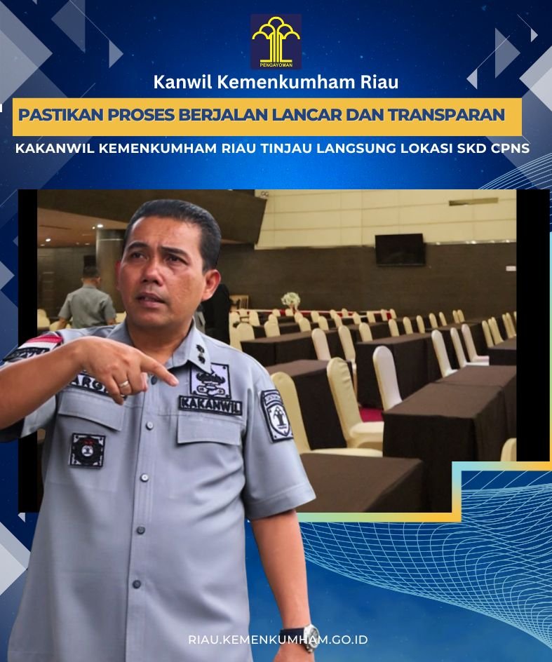 PEKANBARU, KUJANGPOST.com – Kepala Kantor Wilayah Kementerian Hukum dan HAM Riau, Budi Argap Situngkir didampingi Kepala Divisi Administrasi Johan Manurung secara langsung meninjau langsung lokasi pelaksanaan Seleksi Kompetensi Dasar (SKD) Calon Pegawai Negeri Sipil (CPNS) Tahun 2024 di Hotel Grand Central Pekanbaru. Peninjauan ini dilakukan untuk memastikan seluruh rangkaian seleksi berjalan lancar, transparan, dan sesuai dengan ketentuan yang berlaku. Selasa.(15/10/2024)