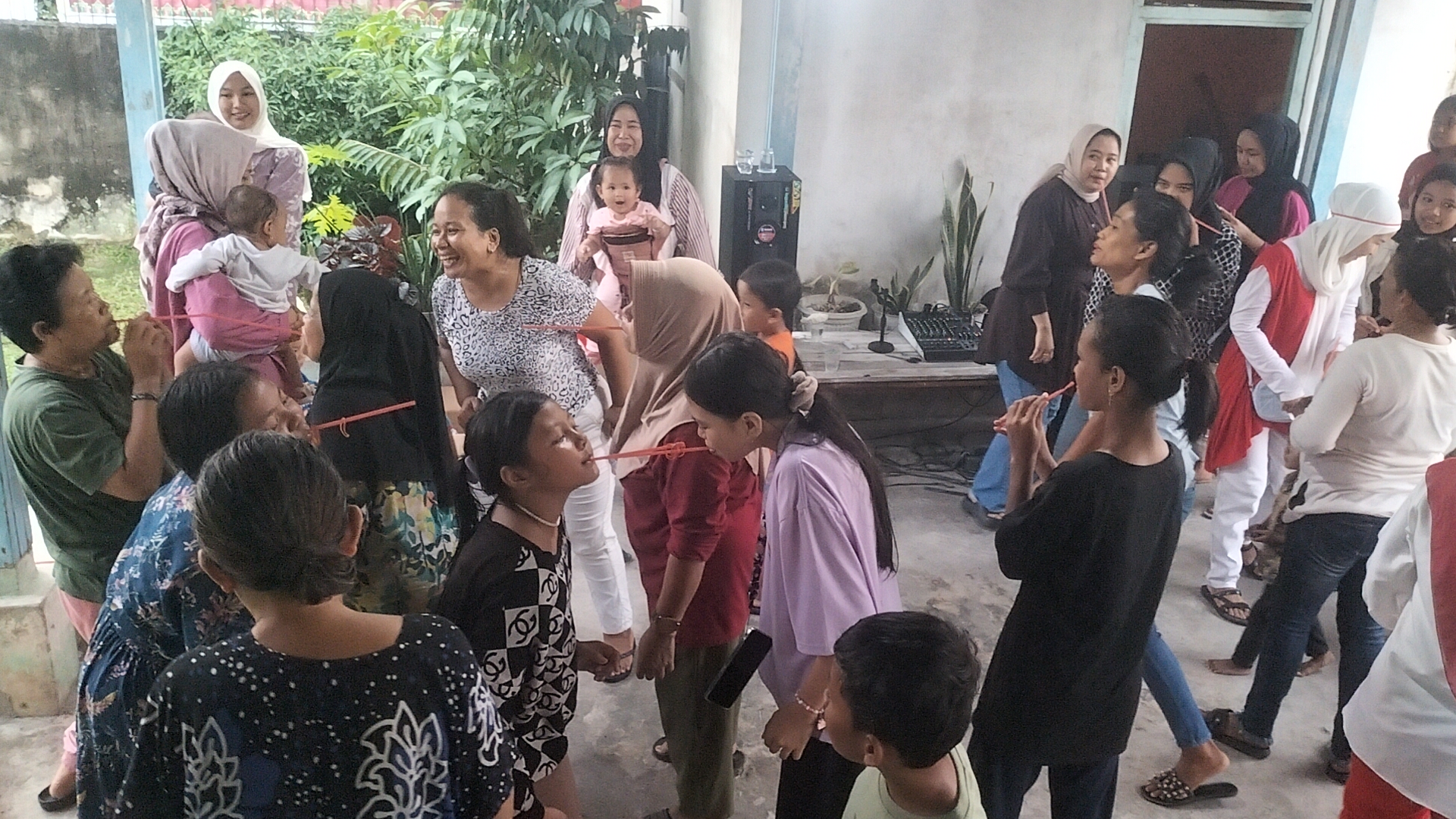 Untuk Ibu ibu perlombaan joget balon dan lomba mengambil karet gelang melalui sedotan yang dimainkan dengan berkelompok yang mana diikuti dengan 3 kelompok. Saat permainan joget balon luar biasa heboh dengan keseruan para Ibu ibu untuk mempertahankan balon hingga ahir permainan.