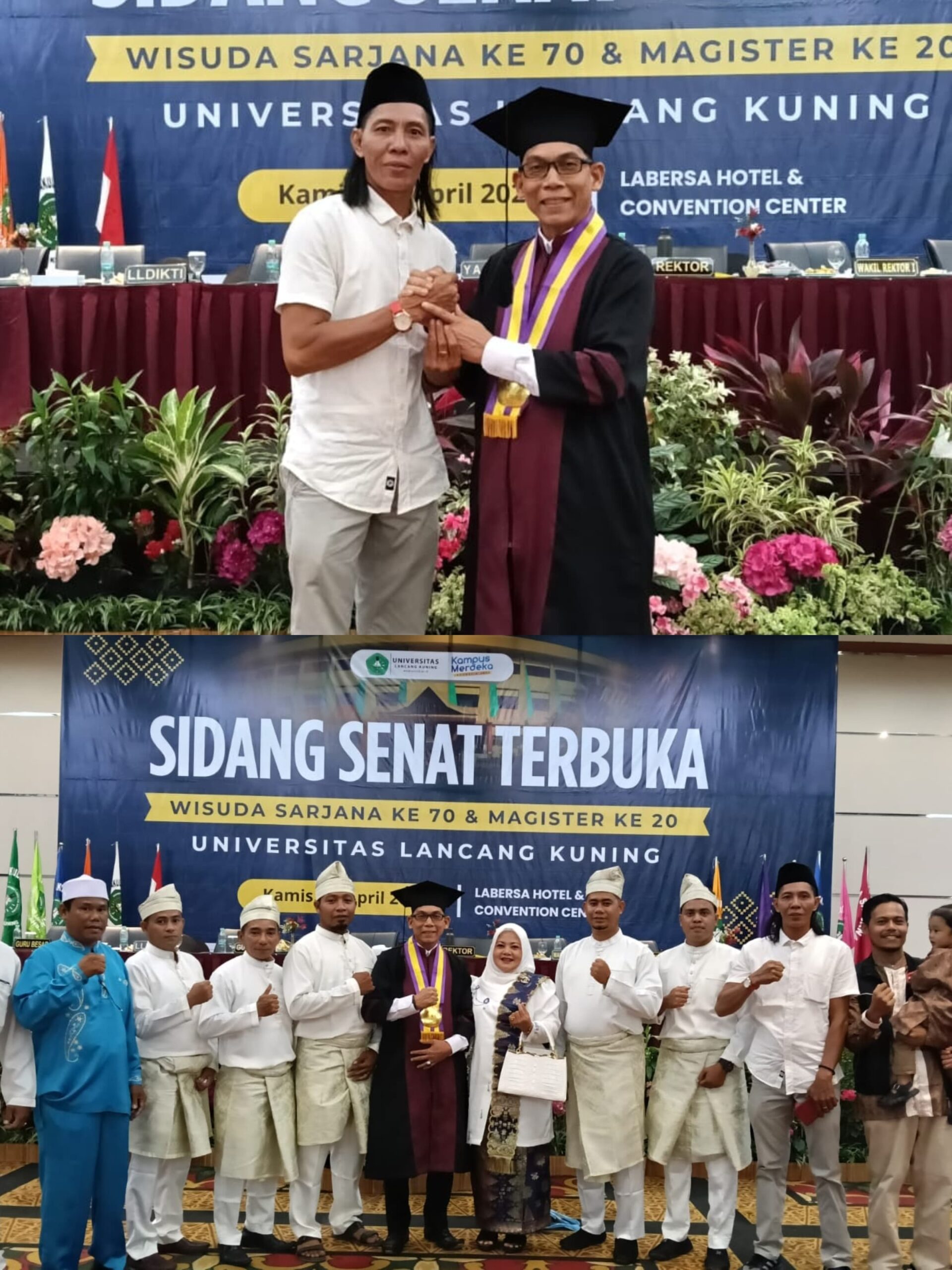 Sebuah pencapaian membanggakan kembali diraih oleh Kepala Desa Kepenuhan Timur, Azhar, S.H., yang kini resmi menyandang gelar Magister Hukum (M.H.) setelah berhasil menuntaskan pendidikan pascasarjana di Universitas Lancang Kuning, Pekanbaru. Momen penting tersebut dirayakan dalam prosesi wisuda yang berlangsung khidmat pada hari Rabu, 24/04/ 2025, bertempat di Hotel Labersa, Pekanbaru.