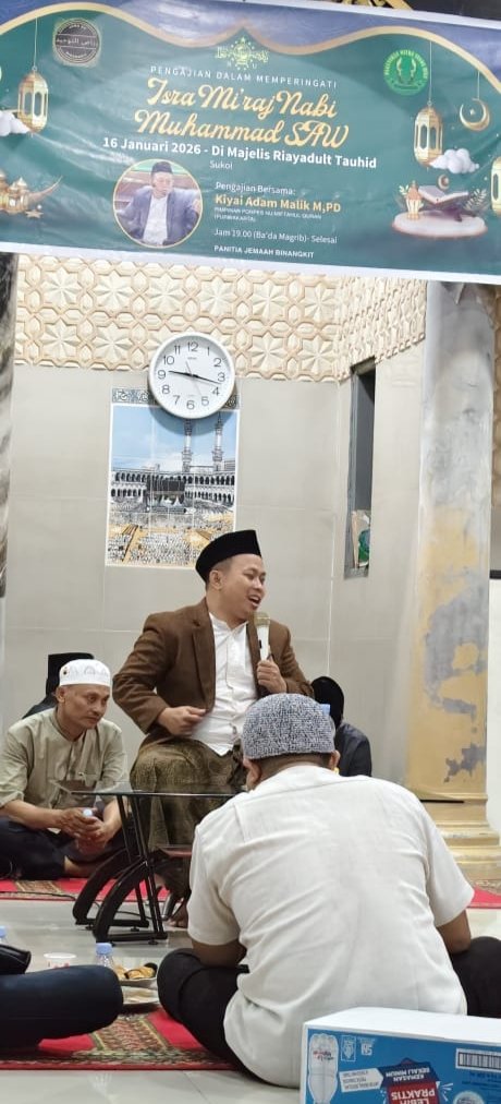 PEKANBARU, KUJANGPOST.com – Majelis Riyadult Tauhid, Gang Sukoi, Marpoyan Damai, menggelar peringatan Isra Mi’raj Nabi Muhammad SAW pada Jumat (16/01/2026). Kegiatan ini diselenggarakan oleh panitia Binangkit bersama jamaah Paguyuban Mitra Sunda Riau (MISURI).