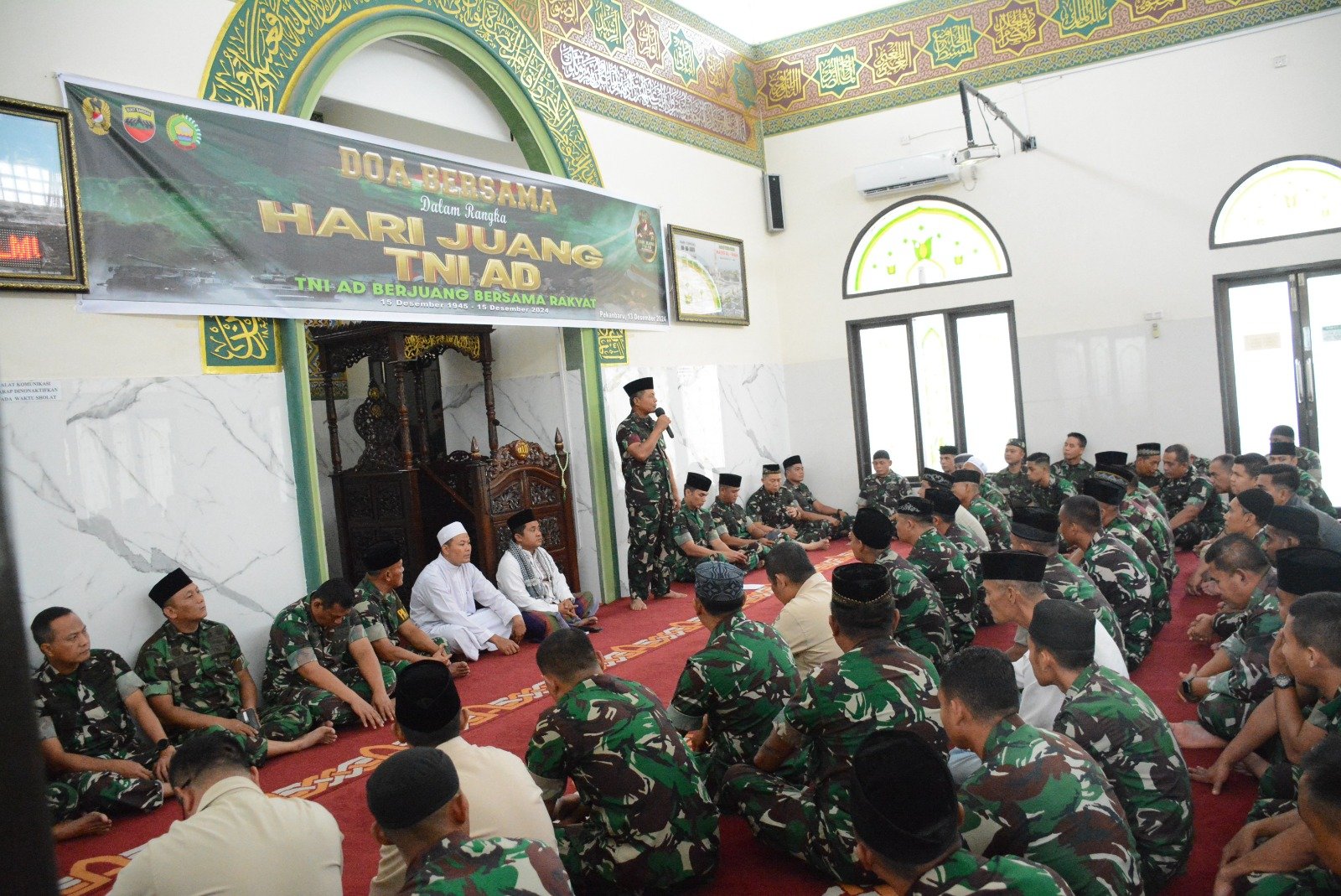 PEKANBARU, KUJANGPOST.com — 13 Desember 2024 – Dalam rangka memperingati Hari Juang TNI AD ke-79, Korem 031/Wira Bima melaksanakan doa bersama di Markas Korem 031/Wira Bima. Kegiatan ini berlangsung di Masjid Al-Iman Korem 031/Wira Bima yang beralamat di Jl. Mayor Ali Rasyid No.1 Pekanbaru.