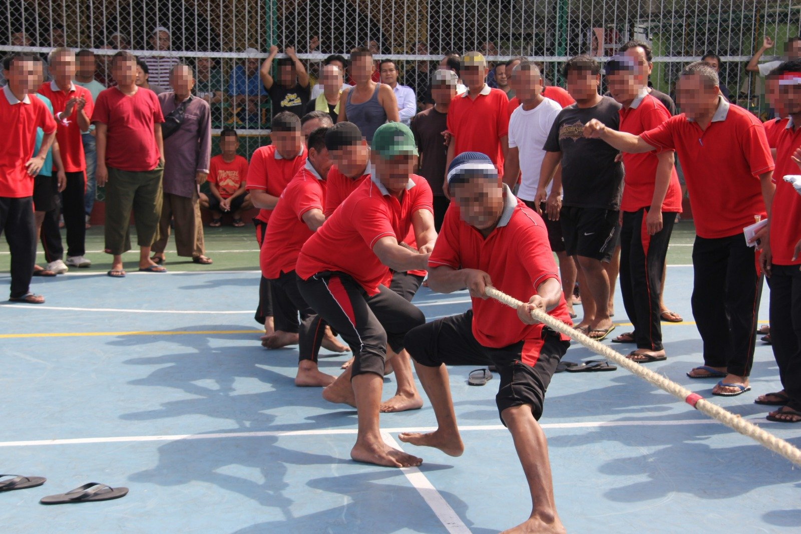 Untuk perlombaan tarik tambang antar warga binaan dimenangkan oleh blok Rehab sebagai juara pertama dan blok F sebagai juara kedua.