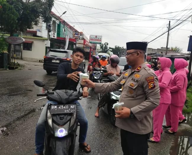 Kegiatan ini dipimpin langsung oleh Kapolsek Rumbai Pesisir, Kompol Budi Permana, S.Psi, bersama sejumlah personel kepolisian serta ibu-ibu Bhayangkari. Sebanyak 100 paket takjil dibagikan kepada pengendara menjelang waktu berbuka puasa.