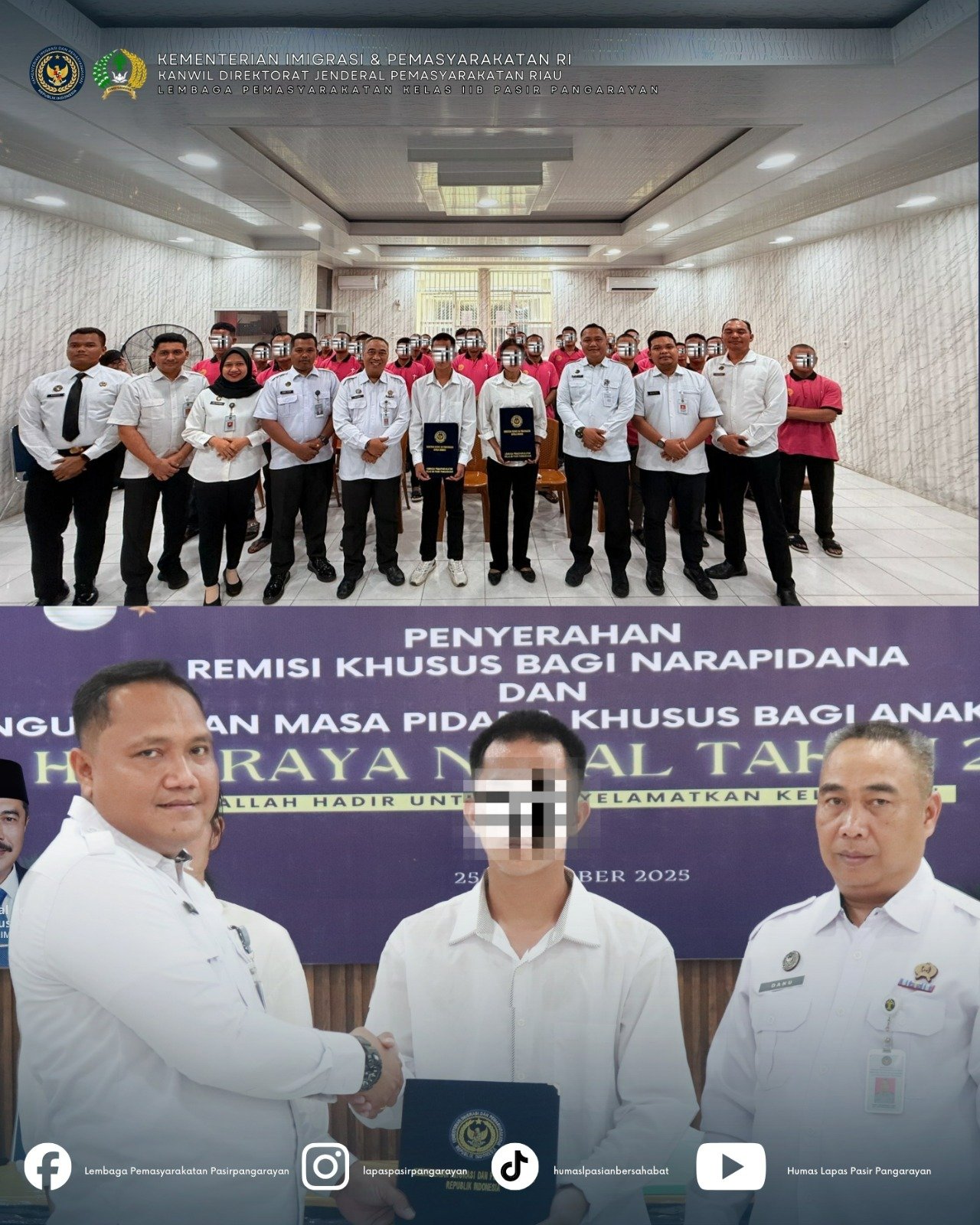 Pasir Pengaraian | KUJANGPOST.com-embaga Pemasyarakatan (Lapas) Kelas IIB Pasir Pangaraian memberikan Remisi Khusus Hari Raya Natal Tahun 2025 kepada Warga Binaan yang beragama Kristen Kamis (25/12/2025) sebagai bentuk pemenuhan hak Warga Binaan sesuai ketentuan peraturan perundang-undangan yang berlaku.