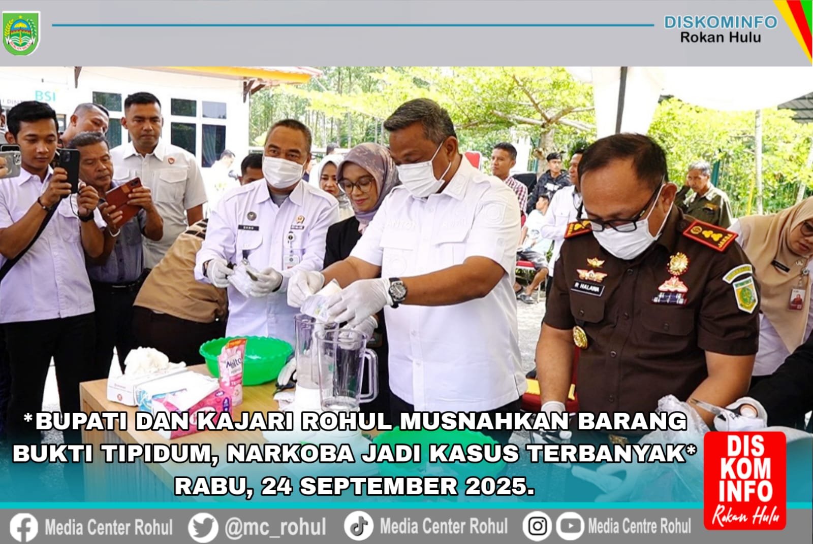 Rokan Hulu | KUJANGPOST.com-Bupati Rokan Hulu, Anton ST, MM bersama Kepala Kejaksaan Negeri (Kajari) Rokan Hulu, Dr. Rabani Meryanto Halawa, SH, MH, didampingi jajaran Forkopimda, memimpin pemusnahan barang bukti tindak pidana umum (Tipidum) yang telah berkekuatan hukum tetap (inkracht van gewijsde). Kegiatan berlangsung di halaman Kantor Kejari Rohul, Rabu 24/09/2025
