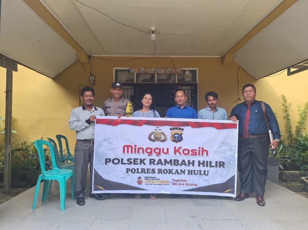 Dalam kegiatan tersebut, personel Polsek Rambah Hilir yang terlibat yakni Aipda Ardino dan Briptu Indra Gunawan Hrp, S.H., berinteraksi langsung dengan jemaat serta tokoh agama setempat dalam suasana yang penuh keakraban dan kekeluargaan.