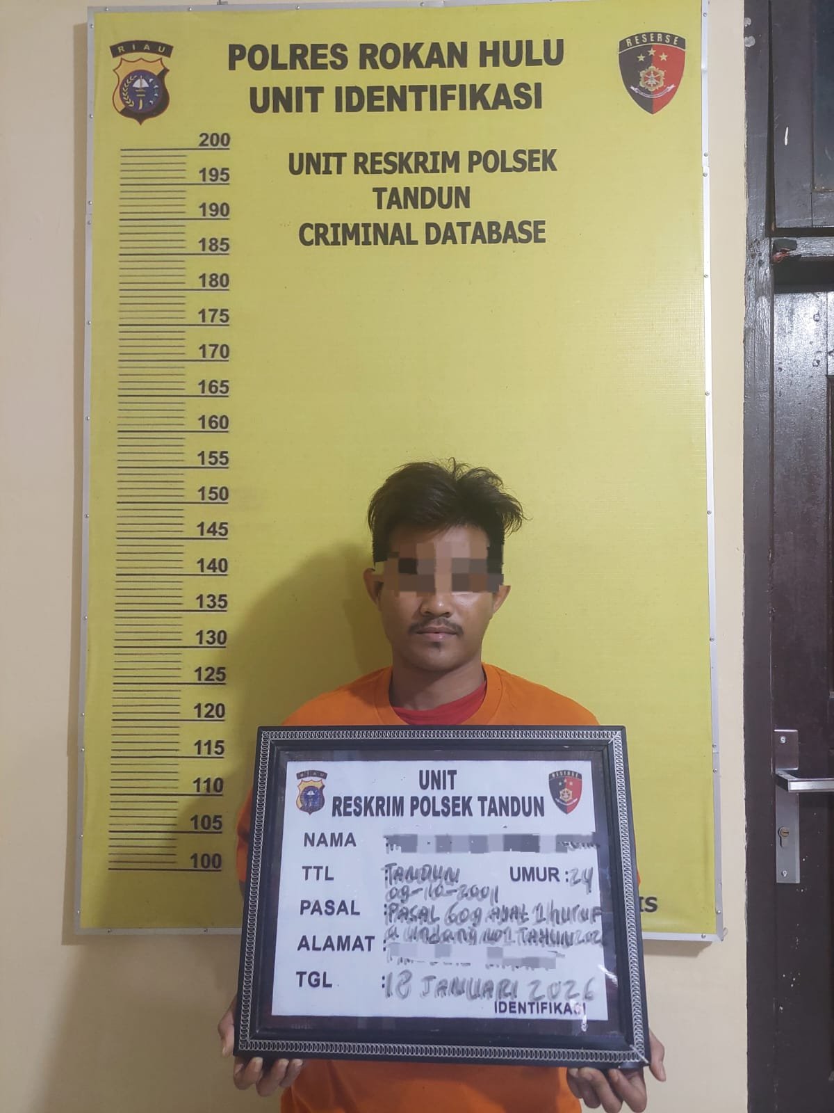 Selanjutnya, pelaku beserta seluruh barang bukti dibawa ke Polsek Tandun guna menjalani proses hukum lebih lanjut. Pelaku disangkakan melanggar pasal 609 ayat (1) huruf a Undang-undang No 1 Tahun 2023 tentang KUHP Jo Lampiran II Undang- undang No 1 Tahun 2026 tentang Penyesuaian pidana Jo pasal 114 ayat (1) Undang -undang No 35 Tahun 2009 tentang Narkotika.