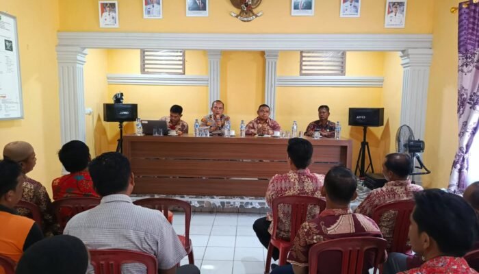 Kapolsek Tambusai IPTU Kristian Hadinata Sirait, S.E memimpin langsung musyawarah kesepakatan penertiban jual beli Tandan Buah Segar (TBS) sawit di Aula Kantor Desa Batas, Kecamatan Tambusai.
