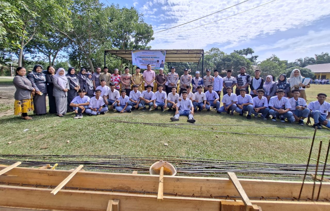 Bonai|KUJANGPOST.com -Pembangunan Musala Darul Ilmi di SMA Negeri 1 Bonai Darussalam resmi dimulai dengan prosesi peletakan batu pertama pada Selasa (28/10/2025). Kegiatan ini dipimpin langsung oleh Ketua DPD APDESI Provinsi Riau, Zulfahrianto, SE, yang turut didampingi oleh sejumlah pejabat daerah.