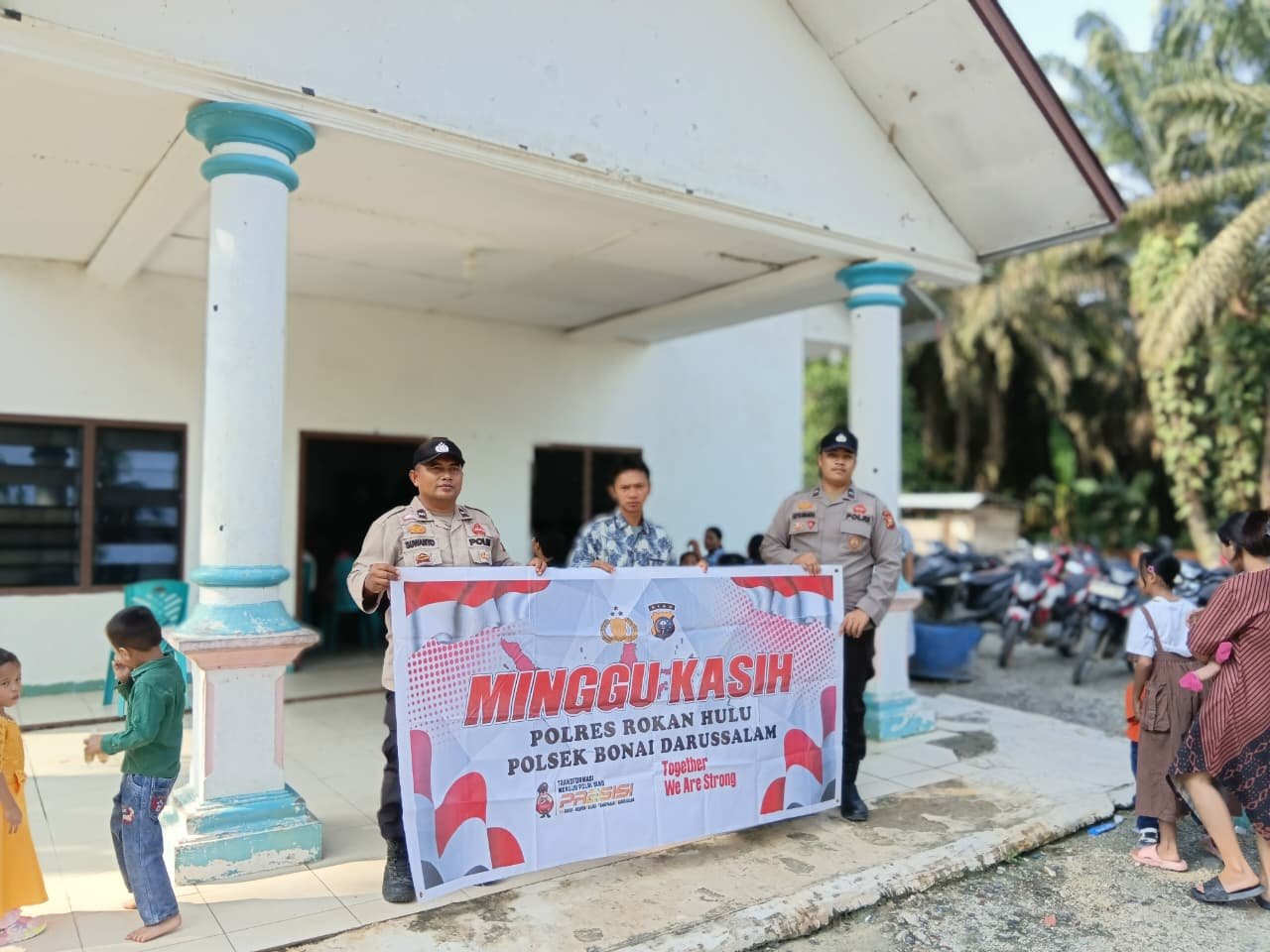 Polsek Bonai Darussalam berkomitmen untuk terus melaksanakan Program Minggu Kasih secara berkelanjutan sebagai bagian dari upaya membangun kedekatan dengan masyarakat serta menjaga stabilitas keamanan dan ketertiban di wilayah Kabupaten Rokan Hulu. *(Humas Polres Rohul)*