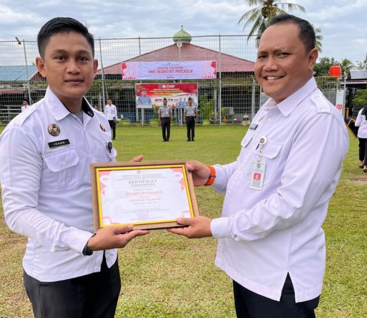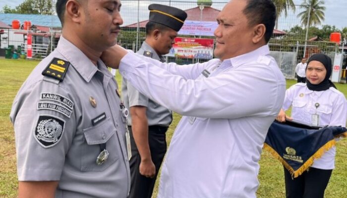 Pasir Pengaraian – KUJANGPOST.com-Lapas Kelas IIB Pasir Pangarayan melaksanakan penyematan tanda kenaikan pangkat pegawai sekaligus pemberian penghargaan Pegawai Teladan Bulan Agustus 2025, Rabu (1/10). Kegiatan ini terasa semakin istimewa karena digelar bertepatan dengan momen Peringatan Hari Kesaktian Pancasila yang dilaksanakan di lingkungan Lapas Pasir Pangaraian.