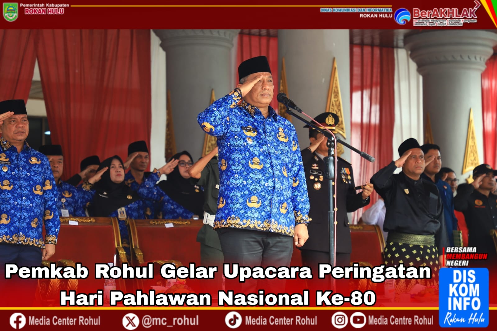 Rohul | KUJANGPOST.com-Pemerintah Kabupaten (Pemkab) Rokan Hulu (Rohul) gelar upacara peringatan Hari Pahlawan Nasional ke-80 di halaman Kantor Bupati, Senin (10/11/2025).