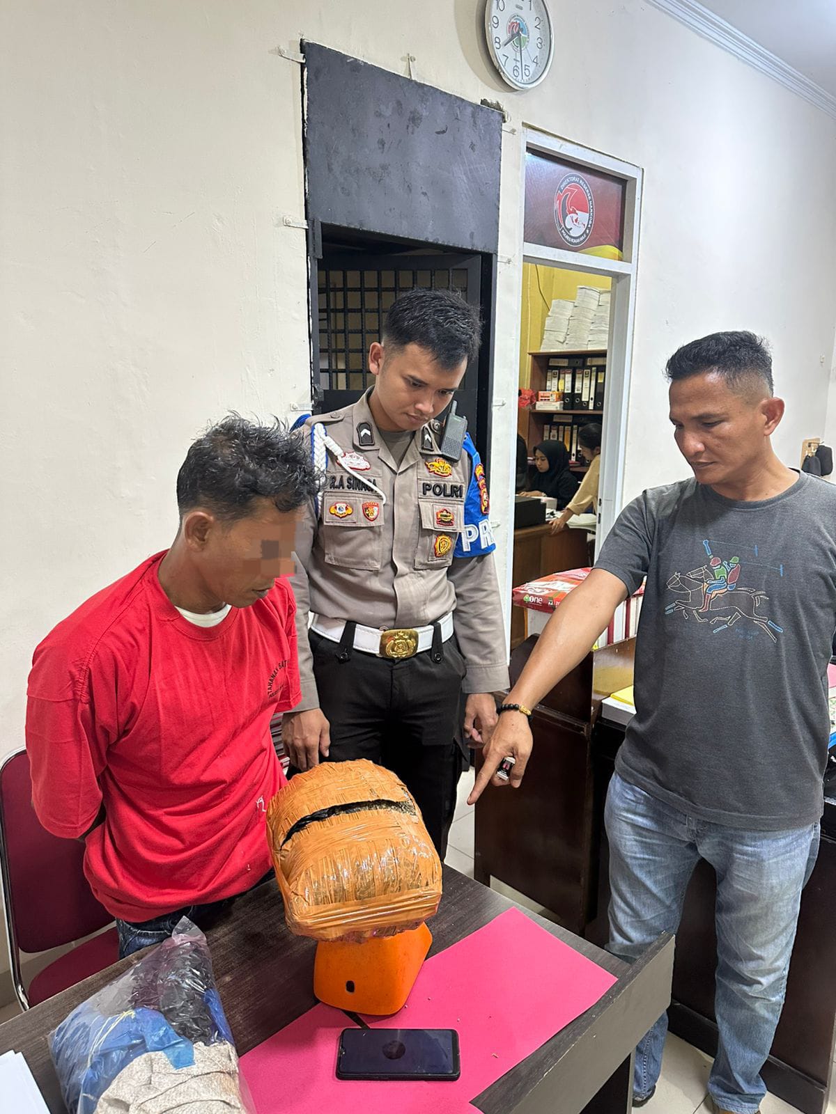 Berdasarkan informasi yang diterima, dilakukan penyelidikan. petugas berhasil menangkap tersangka dan menyita barang bukti berupa 1 paket daun ganja kering, 1 buah kantong kain putih, 1 unit handphone, dan 1 unit sepeda motor.