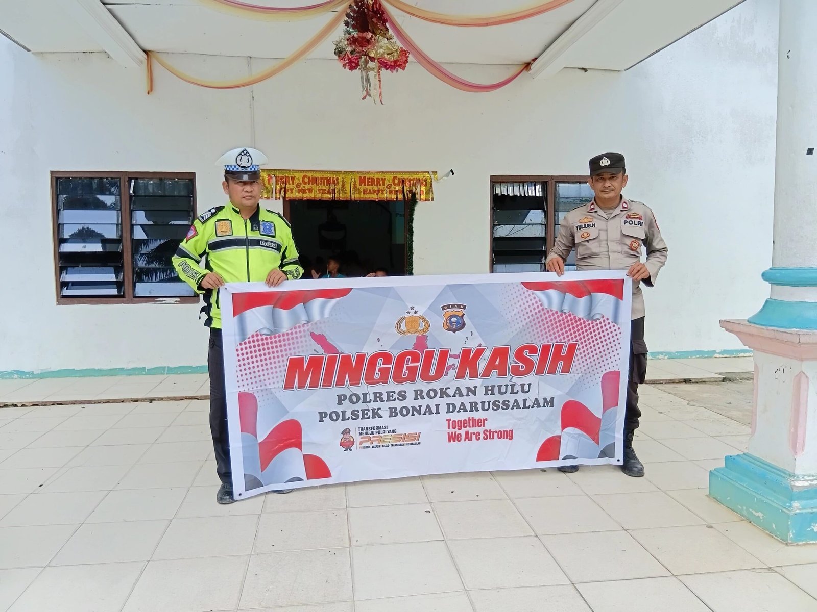 ROKAN HULU | KUJANGPOST.com-Dalam rangka memberikan rasa aman dan nyaman kepada masyarakat yang melaksanakan ibadah, Polsek Bonai Darussalam melaksanakan patroli dan pengamanan ibadah Minggu di wilayah hukumnya, Minggu (28/12/2025).