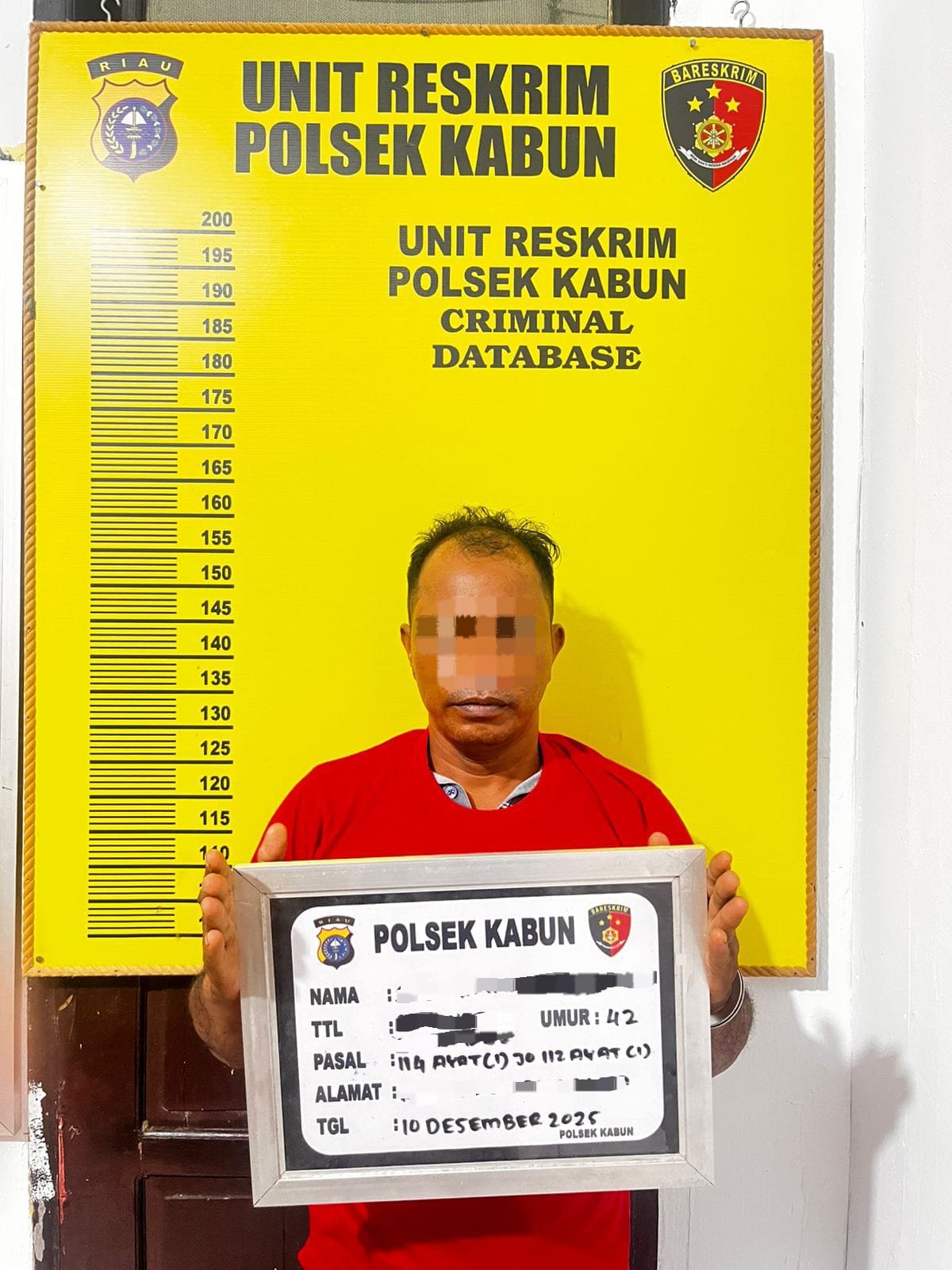 Tersangka kemudian dibawa ke Polsek Kabun untuk proses hukum lebih lanjut. Hasil pemeriksaan awal menunjukkan bahwa urine tersangka positif mengandung metamfetamin.