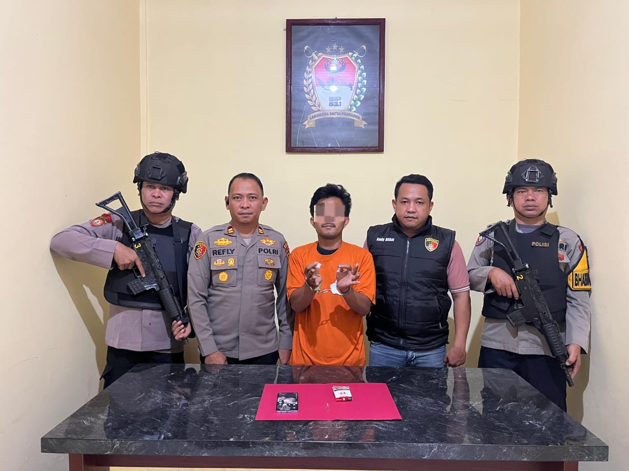 Setelah dilakukan penyelidikan, tim yang dipimpin IPDA Andy Nopri Akbar, S.H. melihat seorang laki-laki yang mencurigakan dan langsung melakukan penangkapan 1 orang tersangka, yaitu inisial Y (25 tahun).