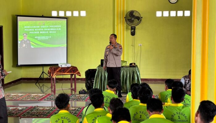 Kunto Darussalam | KUJANGPOST.com – Kapolsek Kunto Darussalam, AKP Dadan Wardan Sulia, S.H., menggelar kegiatan sosialisasi Green Policing pada Kamis (06/11/2025) bertempat di SMA N 1 Kunto Darussalam. Kegiatan yang dimulai pukul 08.30 WIB ini bertujuan meningkatkan kepedulian terhadap lingkungan melalui aksi penghijauan di sekolah.
