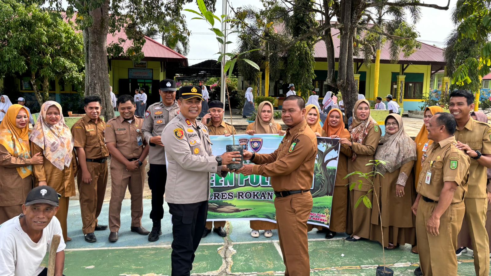 Usai upacara, Kapolsek bersama guru dan pelajar menanam pohon di halaman belakang sekolah. Aksi tersebut menjadi simbol komitmen bersama dalam menjaga kelestarian alam sekaligus mendukung program Green Policing yang digalakkan Polri.