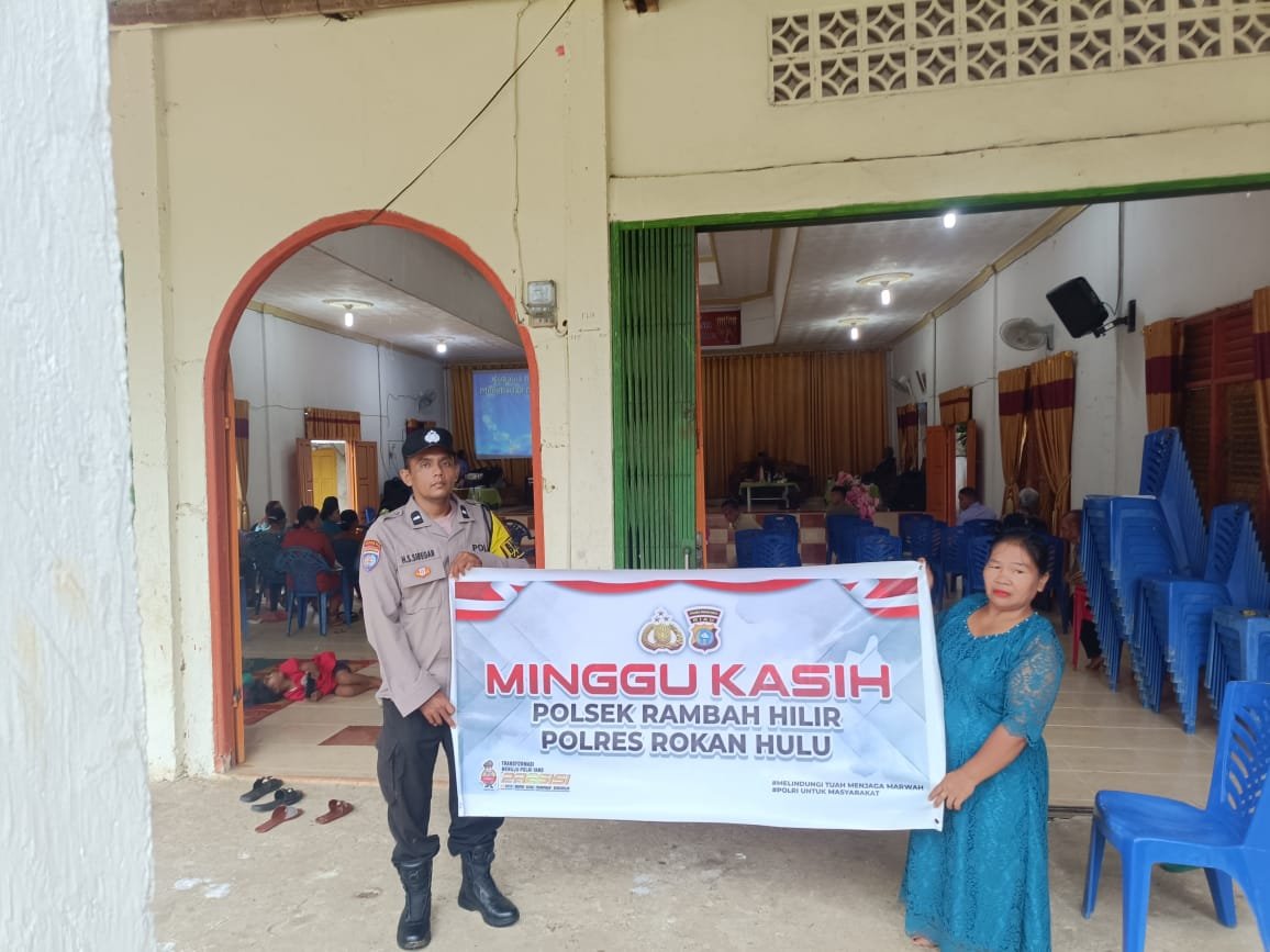 Rokan Hulu | KUJANGPOST.com-Polsek Rambah Hilir, Polres Rokan Hulu, melaksanakan kegiatan Minggu Kasih sebagai upaya mempererat hubungan kemitraan antara Polri dan masyarakat serta memperkuat situasi keamanan dan ketertiban masyarakat. Kegiatan tersebut dilaksanakan pada Minggu, 18 Januari 2026, bertempat di Gereja GPdI Sion Kumu Baru, Kecamatan Rambah Hilir, Kabupaten Rokan Hulu.