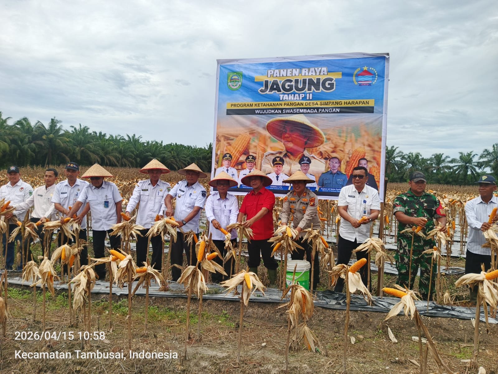 Pasir Pengaraian | KUJANGPOST.com – Polsek Tambusai Utara menunjukkan dukungannya terhadap program ketahanan pangan dengan menghadiri panen raya jagung tahap II tahun 2026 di Desa Simpang Harapan, Kecamatan Tambusai Utara, Kabupaten Rokan Hulu (Rohul), Riau, Rabu (15/4/2026) sekitar pukul 09.00 WIB.