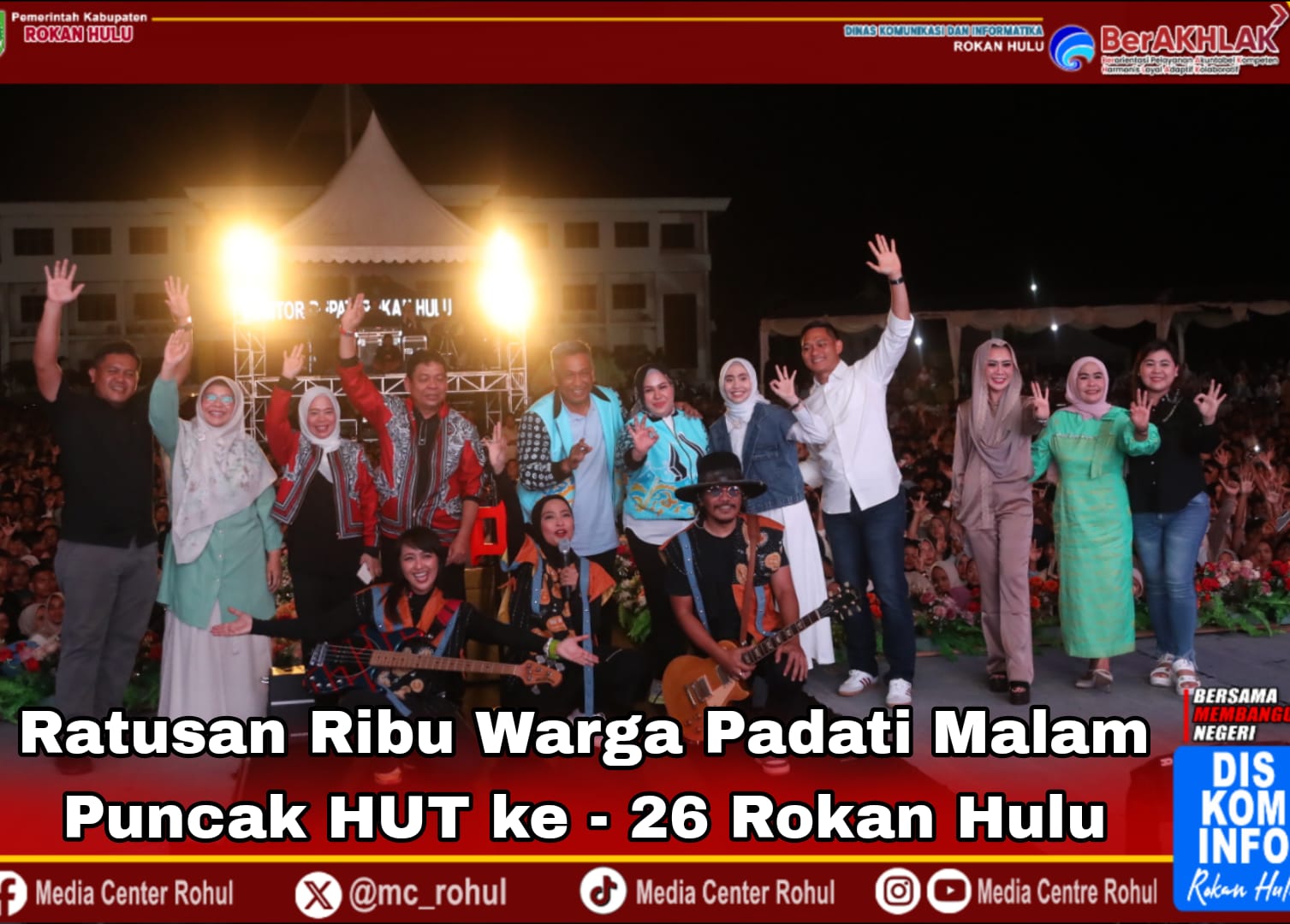 Malam puncak HUT Rohul ke-26 ini tidak hanya menjadi ajang hiburan, tetapi juga momentum mempererat persaudaraan dan kebanggaan masyarakat terhadap daerahnya. Sorak gembira, tawa, dan semangat masyarakat menjadi tanda bahwa “Negeri Seribu Suluk” terus tumbuh dan maju bersama. (Kominfo/JK).