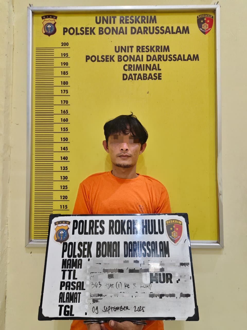 Kapolres Rokan Hulu AKBP Emil Eka Putra, S.I.K., M.Si. melalui Kapolsek Bonai Darussalam IPTU Abdau Wardiyoso, S.Tr.K., M.H. menjelaskan, korban bernama Novia Pristika (31) awalnya mendapat informasi dari warga bahwa kebunnya dicuri. Setelah dicek, korban menemukan tandan sawit berserakan dan segera melapor ke Polsek.