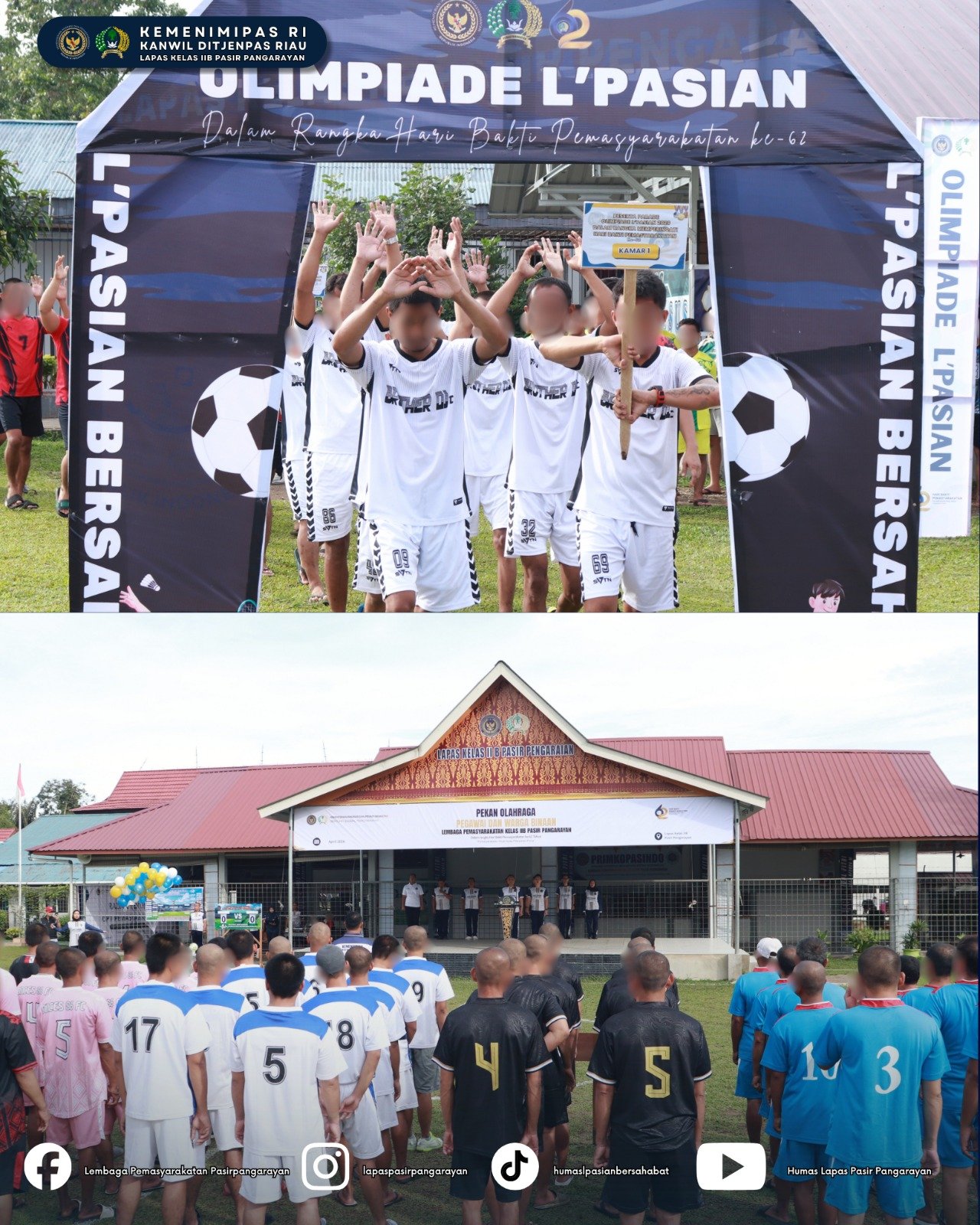 Pasir Pengaraian | KUJANGPOST.com- Lembaga Pemasyarakatan (Lapas) Kelas IIB Pasir Pangarayan menggelar kegiatan pembukaan Olimpiade L’Pasian dalam rangka memeriahkan Hari Bakti Pemasyarakatan ke-62 Tahun 2026 pada Kamis (09/04/2026). Kegiatan yang digelar di lapangan Lapas ini berlangsung meriah dan penuh semangat kebersamaan.