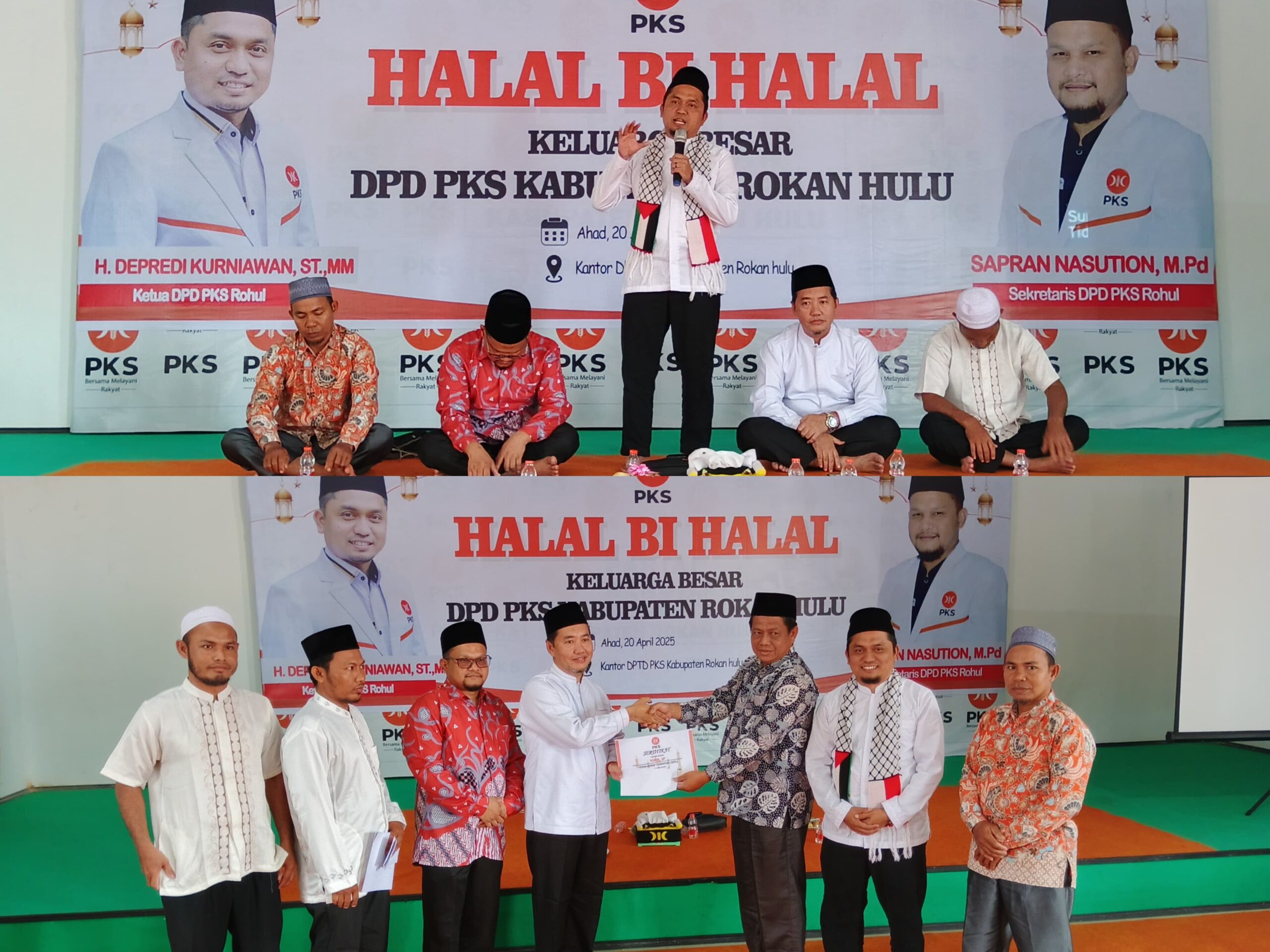 “Halal bihalal ini bukan sekadar tradisi, tetapi menjadi momen penting bagi PKS Rokan Hulu untuk mempertegas jati diri sebagai kekuatan politik yang tak hanya aktif di parlemen, namun juga hadir nyata di tengah masyarakat membawa semangat pelayanan, menumbuhkan solidaritas, dan menyebarkan kebaikan,” ujar H. Adam Syafaat, MA.