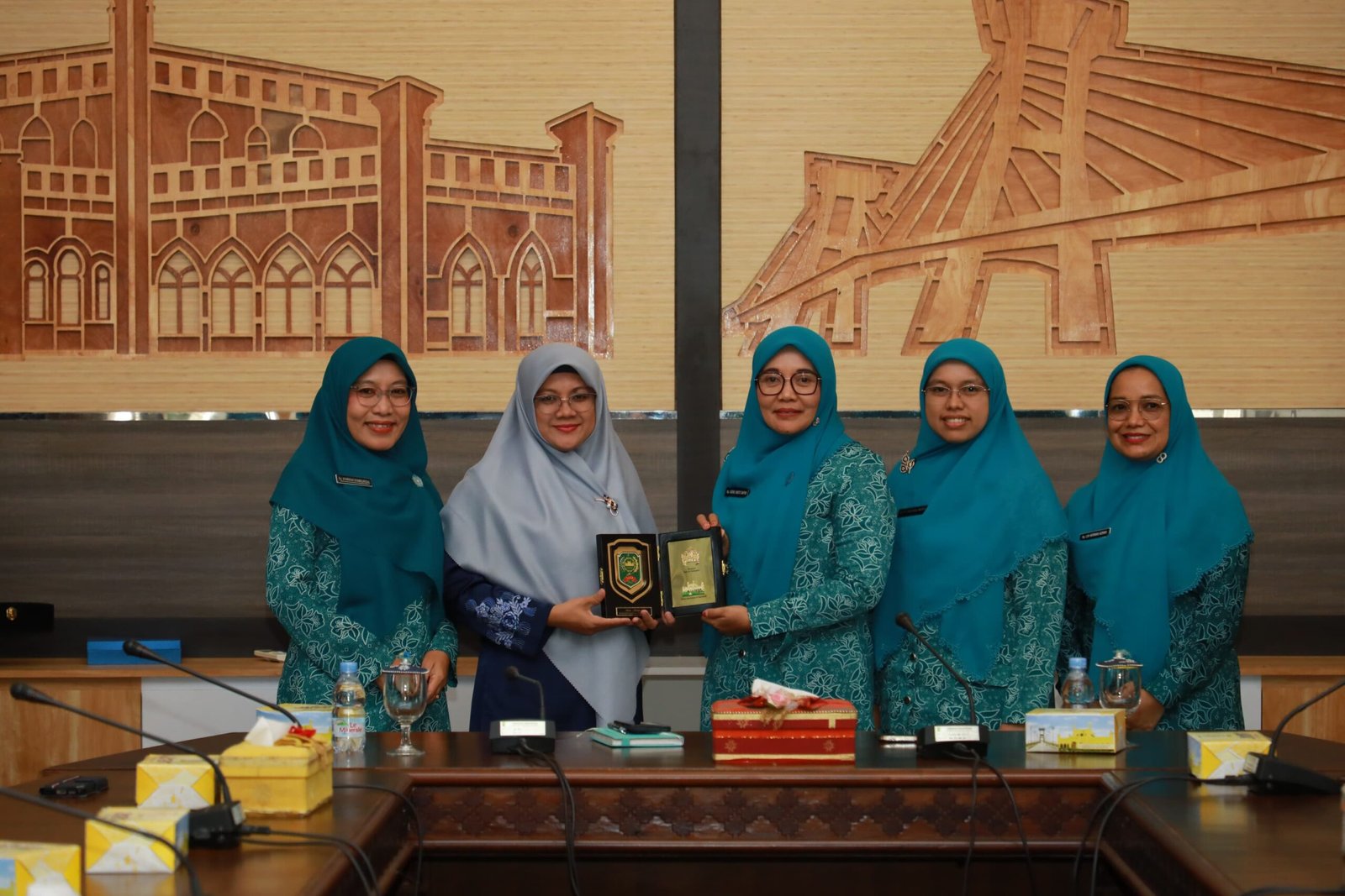 Bupati Siak Afni Zulkifli bersama Ketua TP PKK Kabupaten Siak Siti Sarifah menyambut hangat kunjungan Ketua TP PKK Kabupaten Lima Puluh Kota, Ny. Asra Yanti Safni, beserta rombongan.