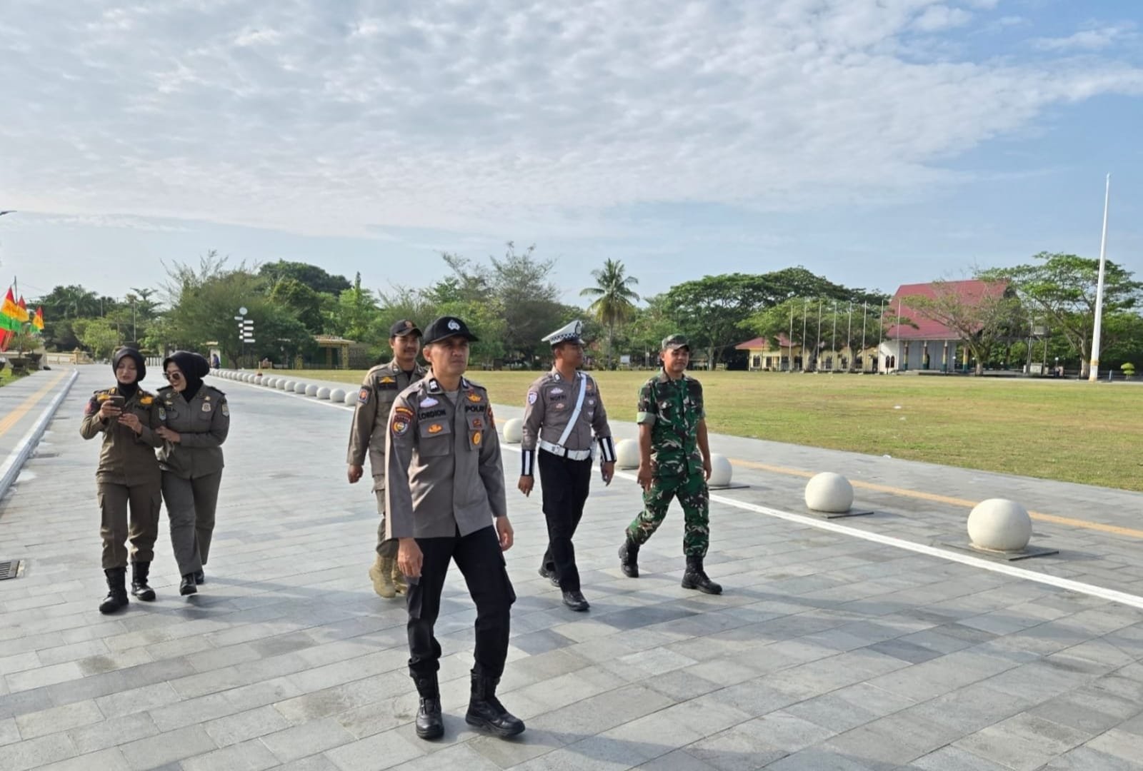 Pengamanan dipusatkan di sekitar Pos Terpadu Pelayanan Istana Siak yang menjadi salah satu lokasi ramai aktivitas masyarakat dan wisatawan, khususnya menjelang momentum libur Lebaran.