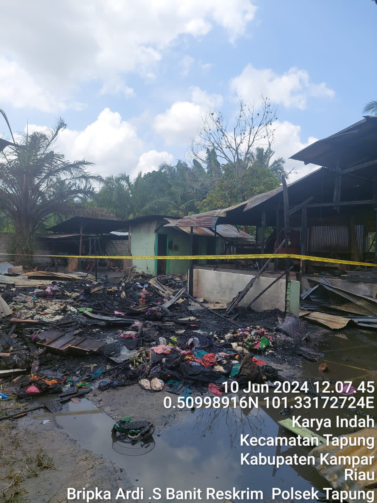 TAPUNG, KUJANGPOST.com – Dua unit rumah yaitu rumah laundry Fira dan rumah makan Buk Yet di Jalan Garuda Sakti KM 7 Desa Karya Indah, Kecamatan Tapung, Kabupaten Kampar hangus dilalap si jago merah, Senin (10/6/2024) sekira pukul 09.30 WIB.