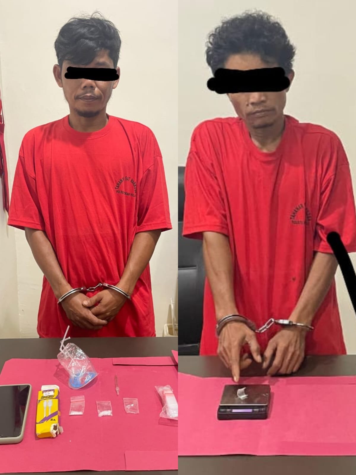 Berdasarkan hasil penangkapan terhadap Tersangka inisial HD, personil menemukan 2 (dua) Paket Narkotika jenis sabu yg dibungkus Plastik klip warna Putih Bening, 1 (satu) lembar Plastik klip warna Putih Bening, 1 (satu) pack Plastik klip warna Putih Bening, 1 (satu) buah kaca pirek, 1 (satu) buah alat hisap sabu (bong), 1 (satu) buah kotak merk Super Speed warna kuning, 1 (satu) unit Handphone merk Vivo warna ungun.