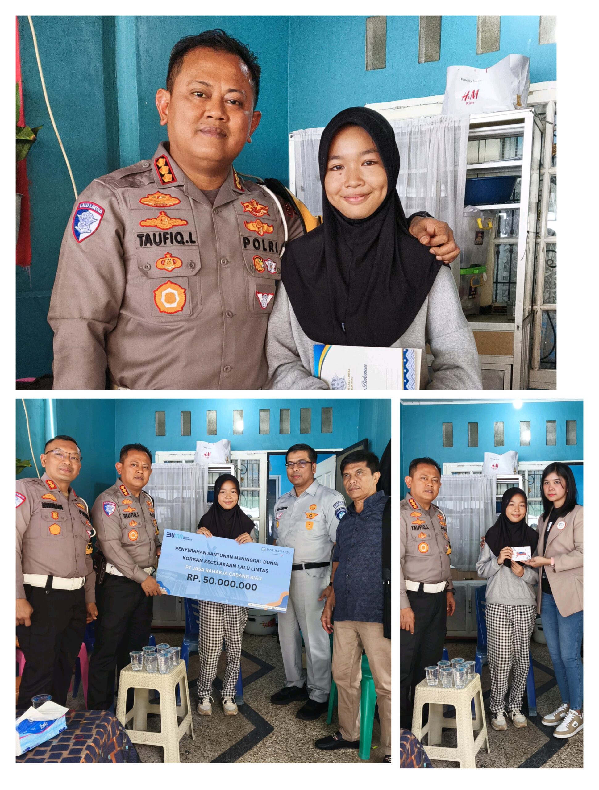 “Alhamdulillah hari ini kami dari PT Jasa Raharja Cabang Riau bersama Bapak Dirlantas serta Pihak Manajemen Bank BRI dapat bertemu langsung dengan ahli waris yaitu Mbak Alda (14) yang merupakan anak pertama dari Almarhum Anton Sujarwo (43) dan Almarhummah Afianti (41) Anton Sujarwo (43) kakak dari Almarhum Aditya (10), untuk santunan hari ini kita serahkan langsung.” Ujar Hasjuddin.