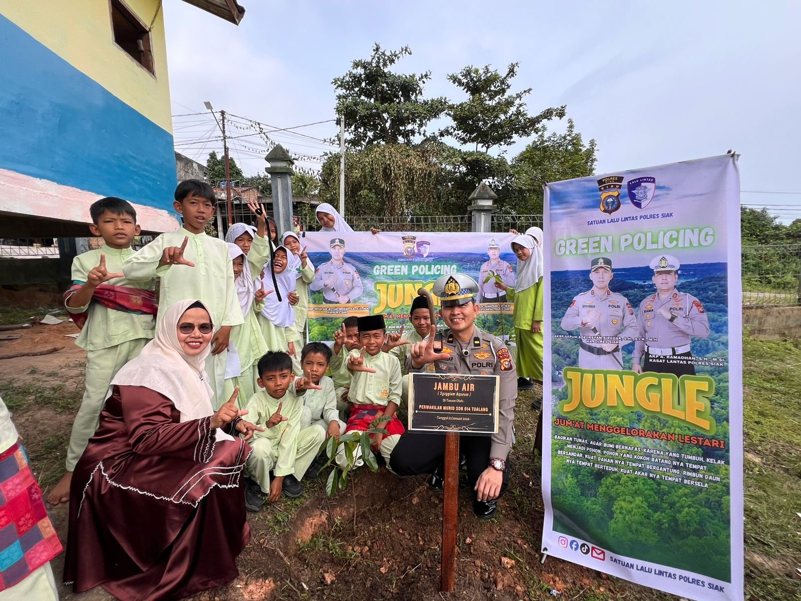 Kasat Lantas Polres Siak, AKP A. Ramadhan, S.H., M.Si., menyampaikan bahwa Program JUNGLE bukan sekadar kegiatan seremonial, tetapi bentuk investasi jangka panjang untuk masa depan lingkungan.