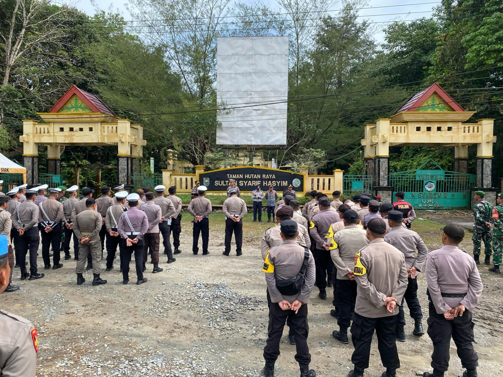 SIAK, KUJANGPOST.com – Dalam rangka memastikan kesiapan pengamanan Jambore Karhutla Riau 2025, Kepala Bagian Operasi (Kabag Ops) Polres Siak, Kompol Didi Antoni, SH, MH, memimpin langsung apel siaga dan gladi persiapan di depan Gerbang Tahura Sultan Syarif Hasyim, Kecamatan Minas, Kabupaten Siak, Riau, pada Rabu (23/4).