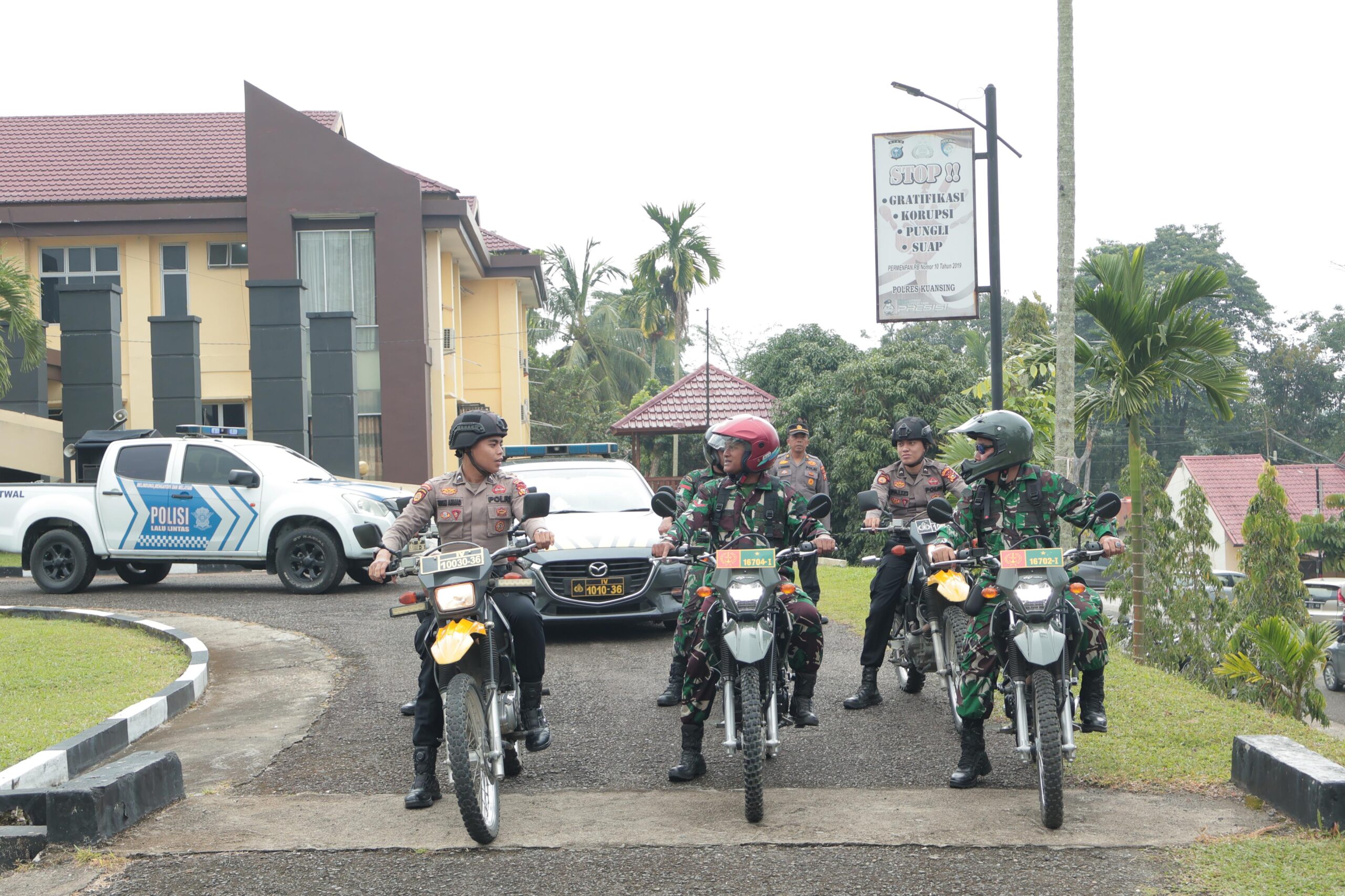 Sasaran Patroli yakni Perkantoran Pemerintah Daerah (Pemda) Kabupaten Kuansing, Kantor Komisi Pemilihan Umum (KPU) Kabupaten Kuansing, dan Kantor Badan Pengawas Pemilu (Bawaslu) Kabupaten Kuansing. Tindakan yang Dilakukan dengan Melaksanakan patroli menggunakan kendaraan roda empat untuk mengantisipasi potensi gangguan Kamtibmas di lokasi-lokasi rawan tindak pidana, Memberikan arahan kepada personel pengamanan objek vital agar melaksanakan tugas sesuai prosedur, dan Menyampaikan imbauan Kamtibmas kepada masyarakat Kabupaten Kuansing guna meningkatkan kesadaran akan pentingnya menjaga keamanan bersama.