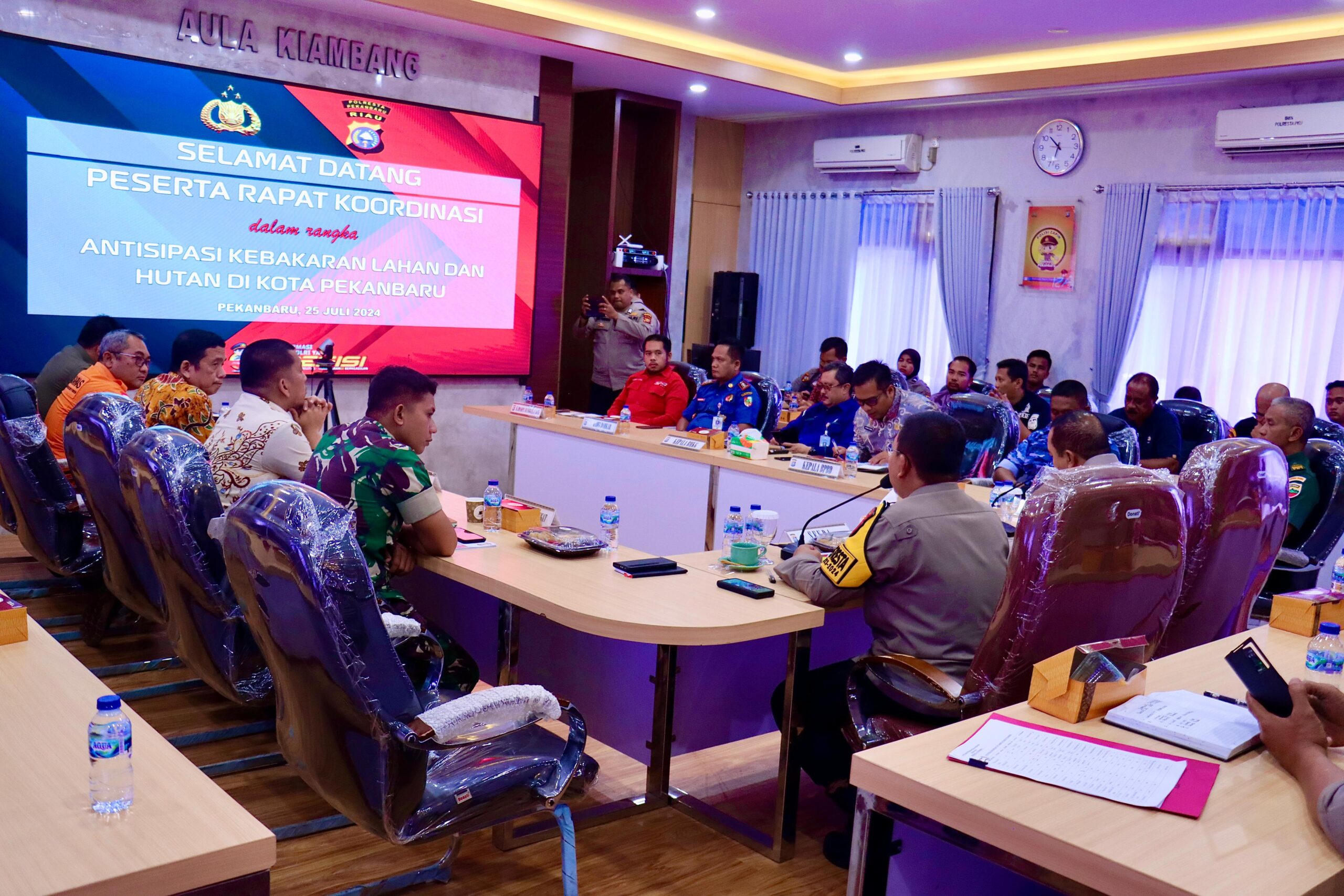 “Rapat ini dilaksanakan sebagai tindak lanjut dari perintah atasan untuk memastikan koordinasi yang solid dalam menanggulangi karhutla di Provinsi Riau, khususnya di Pekanbaru,” ujar Kombes Pol Jeki dalam penyampaiannya.